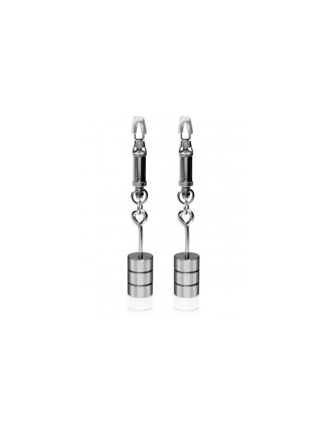 Metal Worx Heavy Weight Nipple Clamps Morsetti per capezzoli in metallo. In acciaio di alta qualità e lucidato a mano alla perfezione. Ogni capolavoro Metal Worx è fornito di una custodia, dove è possibile riporre il vostro giocattolo dopo l'uso. - in acciaio inossidabile lucidato - Regolabili - Peso regolabile per un ulteriore piacere - I tre pesi possono essere attaccati uno alla volta tramite la semplice base a vite. Ciascuno pesa 35,4 g (1,25 once), quando completamente assemblato il morsetto sarà 120,5 g (4,25 once). - Rivestimento in gomma morbida - Eco-friendly e nichel-free Dettagli del prodotto: Colore: Chrome Peso (prodotto): 246 g (8,64 once) Lunghezza (prodotto): 151 mm (6 ") Lunghezza (per peso): 13 mm (0,5 ") Lunghezza (punta del morsetto): 18 mm (0,75 ") Materiale: acciaio