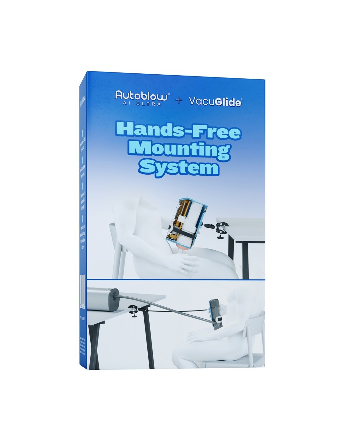 Il pratico sistema di montaggio Hands-Free di Autoblow allinea i masturbatori Ultra e VacuGlide esattamente nella posizione giusta per un divertimento a mani libere durante la masturbazione, da seduti o in piedi. Si fissa in modo facile e veloce a qualsiasi piano fisso (tavolo) e si allinea all'angolo giusto. Il robusto sistema di montaggio Hands-Free è composto da: