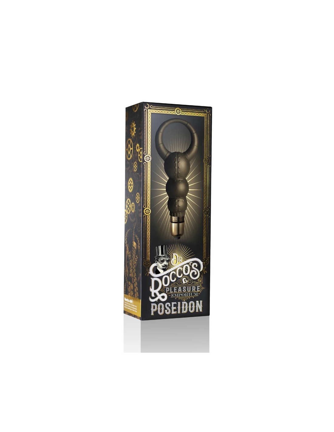 Dr Rocco's Pleasure Emporium Poseidon Dr Rocco vi porterà in un'avventura nel profondo della vostra immaginazione. Rifatevi gli occhi con gadget e dispositivi straordinari che ecciteranno, stuzzicheranno e soddisferanno i più avventurosi desideri sessuali. Creato unicamente per un orgasmico viaggio a ritroso nel tempo, scatenando la vostra fantasia più vintage! Allacciate i corsetti, aggrappatevi ai lacci dei vostri stivaletti e godetevi la corsa A tutto vapore! - C ring da gentiluomo e stimolatore per coppie - 10 potenti funzioni di vibrazione - Impugnatura salda, resistente e flessibile per un piacere potente che dura a lungo - Anallergico - 100% impermeabile e completamente immergibile
