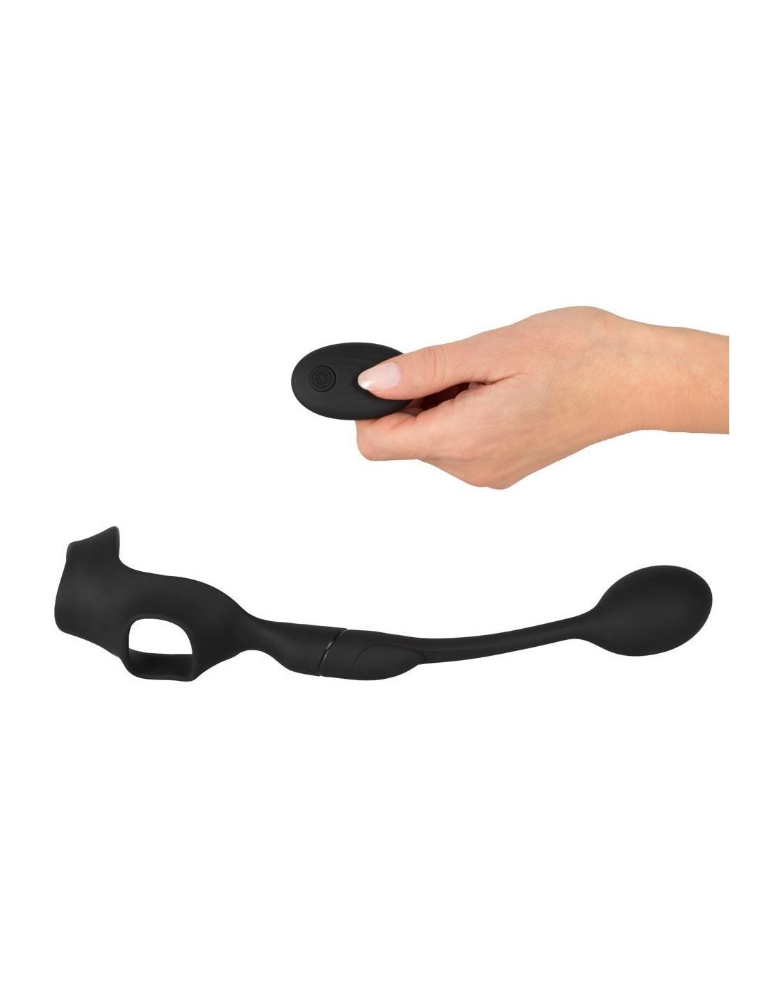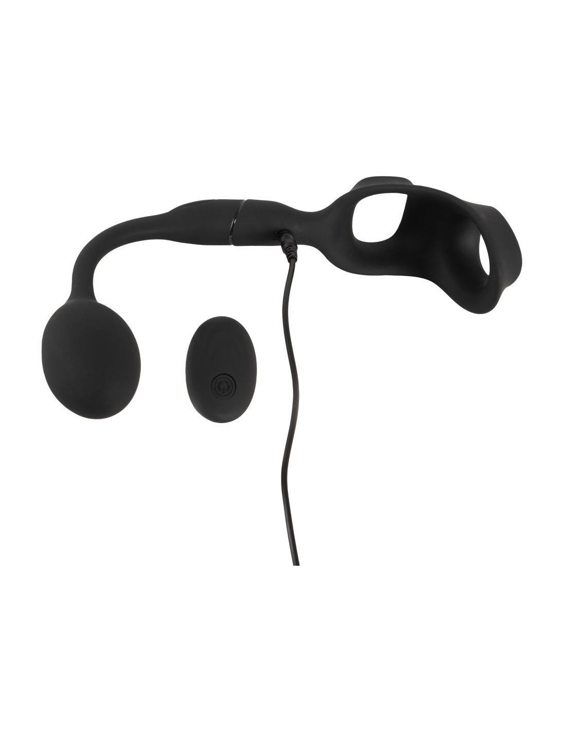 Il Cock Ring con RC Butt Plug di Rebel è un anello combinato pene/testicolo con un plug vibro-anale saldamente bloccato che può essere comodamente controllato tramite il telecomando - con una portata fino a 6 metri, anche dal tuo partner. Gli anelli combinati fanno una presa salda sul pene e sui testicoli e possono sostenere efficacemente la sua erezione grazie all'effetto di stasi del sangue. Allo stesso tempo, il plug vibro-anale inserito, con il suo speciale design a sfera e 10 modalità di vibrazione diverse, fornisce un'intensa stimolazione nella parte posteriore del pene. Realizzata in silicone tutt'intorno e ricoperta da una texture soft touch, questa "imbracatura" assicura una piacevole sensazione sulla pelle e quando viene indossata.
