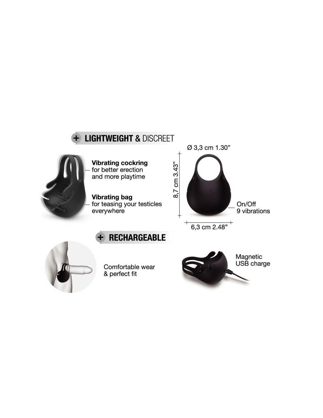 È TEMPO DI SODDISFARE LE TUE FANTASIE PIÙ ESPLOSIVE! FUN BAG è uno stimolatore vibrante per testicoli e pene che rafforza l'erezione e ritarda l'eiaculazione. Super elastico e confortevole, è un piacere giocare con le parti più erotiche del corpo. Indossa semplicemente la tua FUN BAG alla base del pene e gioca con le nove modalità di vibrazione. Con il tuo partner o da solo, gioca con il tuo piacere per un doppio godimento orgasmico!! VANTAGGI Doppia stimolazione morbido silicone Ergonomico e comodo da indossare 9 modelli di vibrazione Si adatta a tutte le taglie Solo e coppia Testicoli, pene e perineo INFORMAZIONI TECNICHE Dimensioni: 6,3 x 8,7 x 5 cm Materiale del prodotto: silicone + ABS Tempo di ricarica: 70-120 minuti. Autonomia: 50 minuti Livello sonoro: più basso. a 45dB Ricarica magnetica USB (cavo incluso) Impermeabile