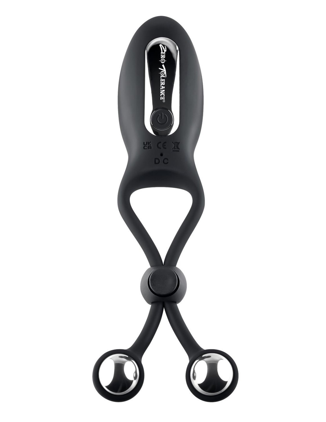 Introducing a unique ring design that’s super comfortable and fiercely titillating. Adjustable silicone straps tie around you like a drawstring and finish with two stainless-steel balls that dangle and massage as they move. The chunky centerpiece features a powerful tapping motor that stimulates in 10 glorious speeds wherever you place it - and the 1-button control is nestled into a stylish chrome-finished plate. Enjoy your long-lasting pleasure underwater as it’s completely submersible, easy to clean, and recharges via USB.