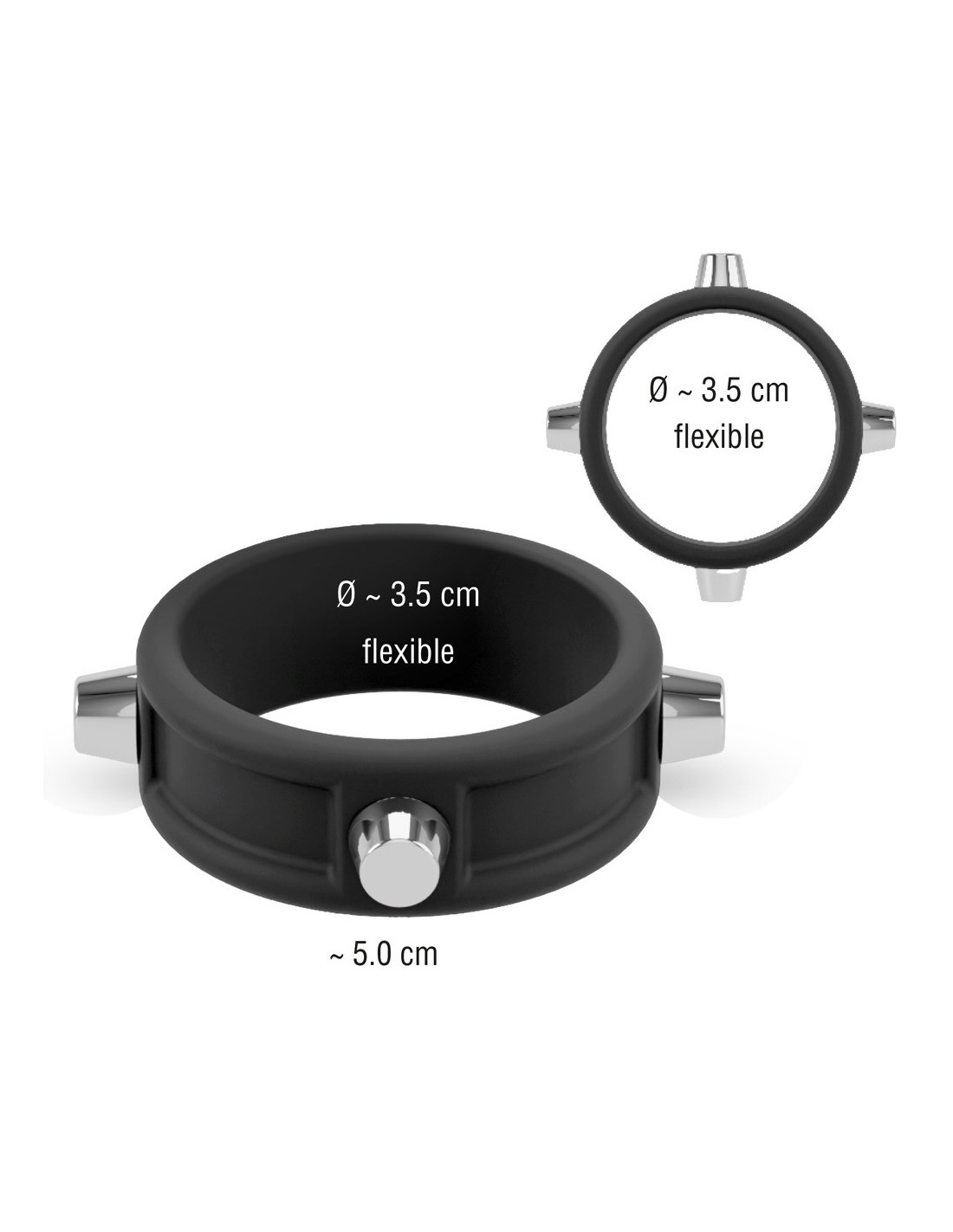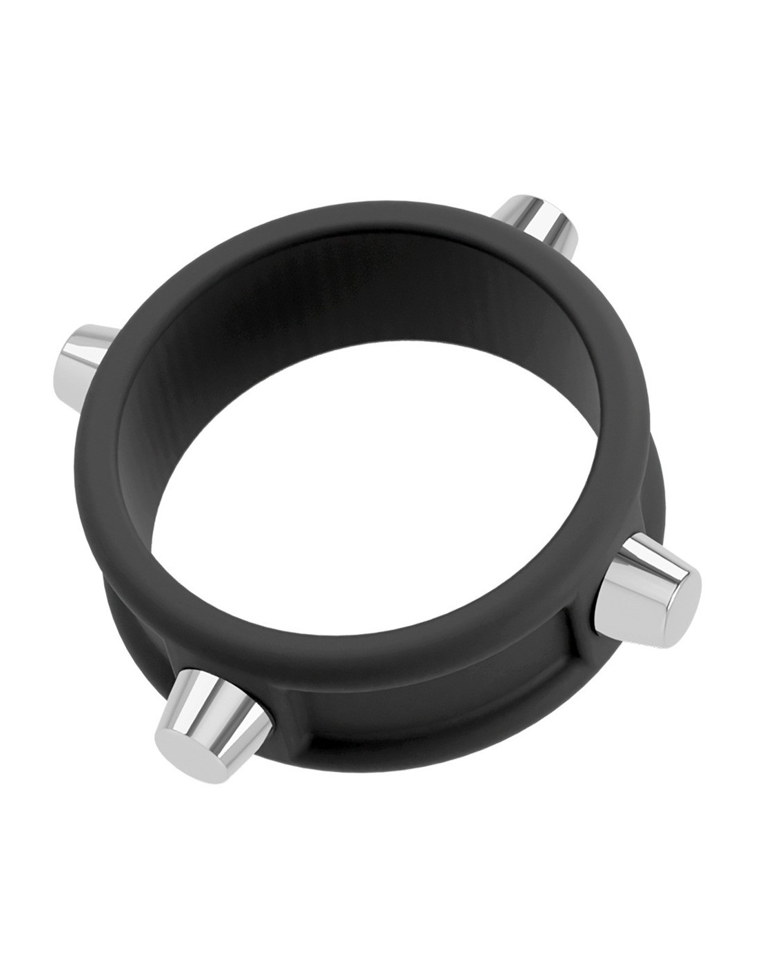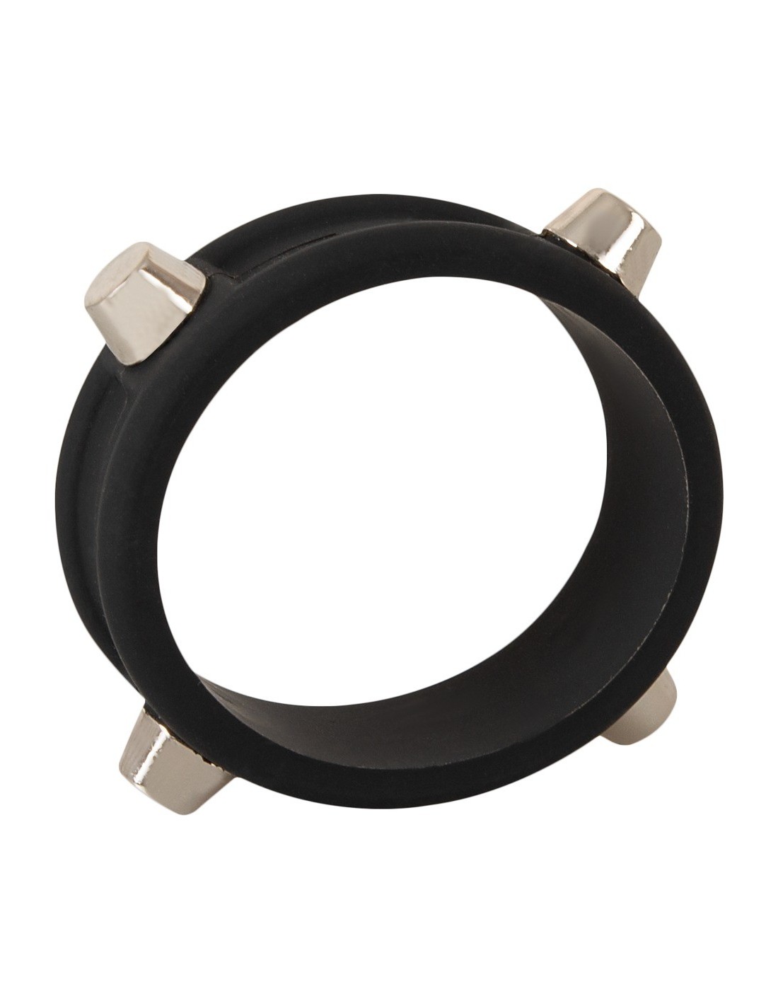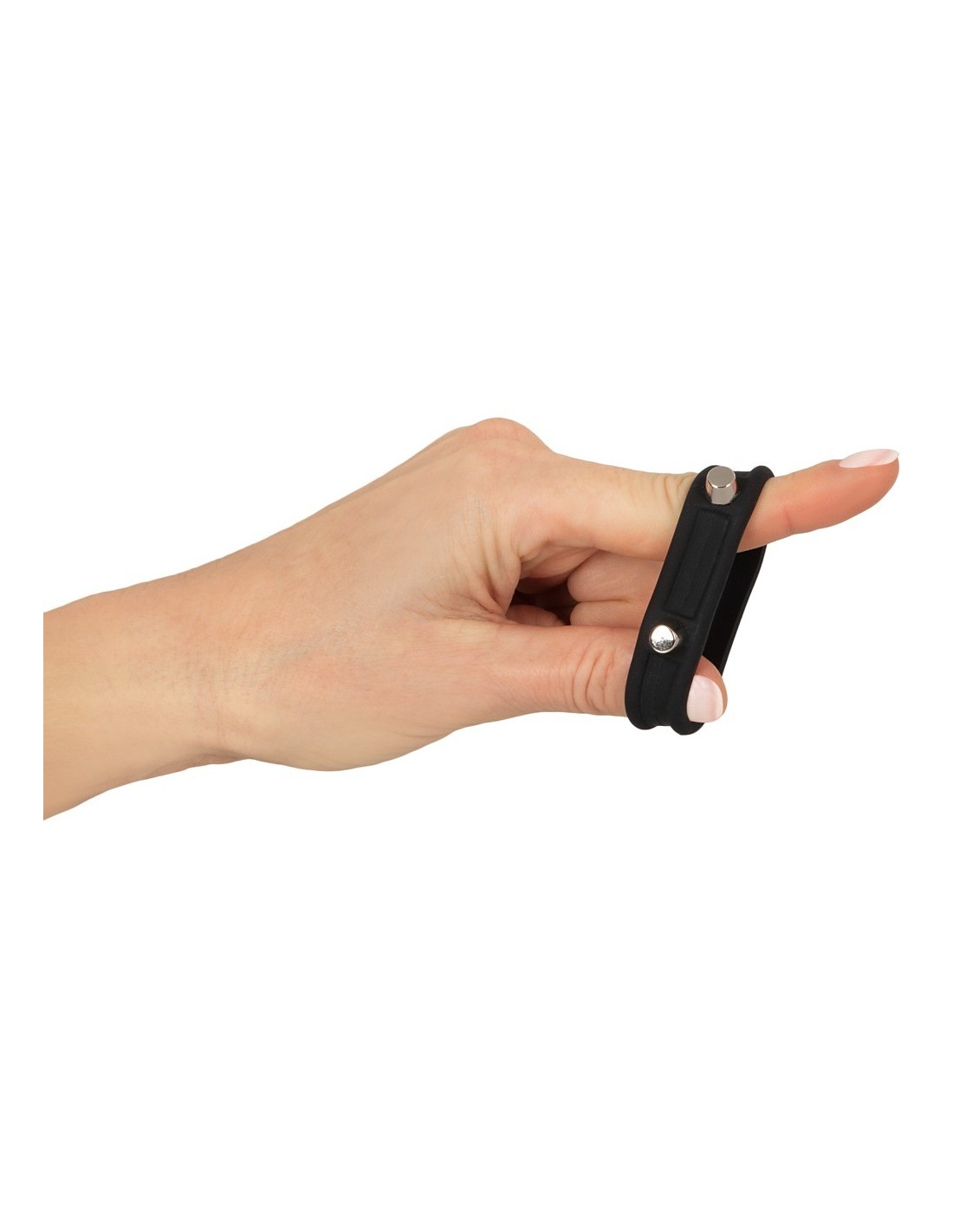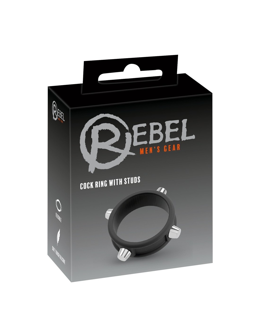 L'anello per il cazzo nero con borchie di Rebel con rivetti in metallo non ha solo un aspetto forte, ma rende anche il pene forte! L'anello elastico si infila semplicemente ed esercita un'eccitante pressione per un effetto di congestione sanguigna che favorisce l'erezione. Realizzato in silicone morbido come la seta, il robusto anello è facile da infilare e sfilare e si modella perfettamente al pene.