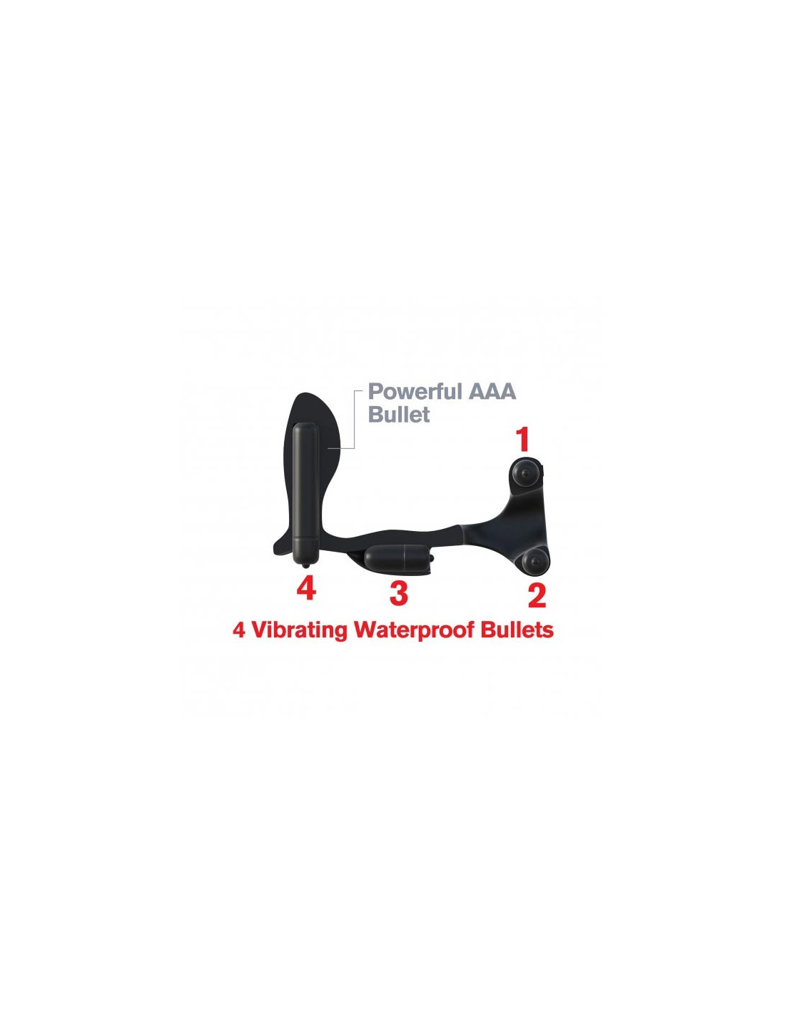 Un nuovo best seller, un nuovo anello vibrante per il pene, per una nuova stimolazione di entrambi i partner! Preparati a vivere una nuova esperienza con Ultimate Ass-gasm, il primo e unico anello per il pene e plug anale con quattro punti di vibrazione, progettato per le coppie! Con i quattro bullet vibranti, impermeabili, alimentate il piacere raggiungendo risultati esplosivi! Un unico sex toy sul mercato che coniuga più funzioni per farvi provare nuove sensazioni! Realizzato in silicone Elite vellutato, questo anello vibrante per il pene con quadrupla azione funziona anche da plug P-Spot consentendovi di prolungare l'eiaculazione e di godere al tempo stesso di un incredibile massaggio prostatico. L'anello in silicone morbido si adatta facilmente rendendoti più forte e sempre pronto per l'azione, mentre i quattro bullet-proiettili vibranti stimolano simultaneamente le vostre zone più sensibili! Ciò che rende davvero questo anello così speciale è il posizionamento strategico dei quattro bullet-proiettili vibranti! Uno si trova sull'anello superiore per la stimolazione diretta del clitoride, uno si trova di fronte ai testicoli, uno nella zona del perineo per una allettante stimolazione, uno all'interno del plug anale per un backdoor-banging sensazionale! Con tutti e quattro i bullet vibranti il sesso non sarà mai più lo stesso! Realizzato in silicone Elite, privo di lattice, senza ftalati, può essere usato con i lubrificanti a base d'acqua. La pulizia è un gioco da ragazzi, con un detergente per sex toy e acqua calda. Utilizzate un lubrificante per un esperienza più bagnata e selvaggia! Articolo Peso: 4,25 once (119 g) Batterie: 1x AAA (non incluse) e 6 LR54 / AG10 (1,5 V) (Incluso) Materiale Anello: Silicone Materiale Vibratore: ABS di plastica Lozione e Toy Cleaner inclusi. Caratteristiche: elastico, ftalato-libero, impermeabile, vibra