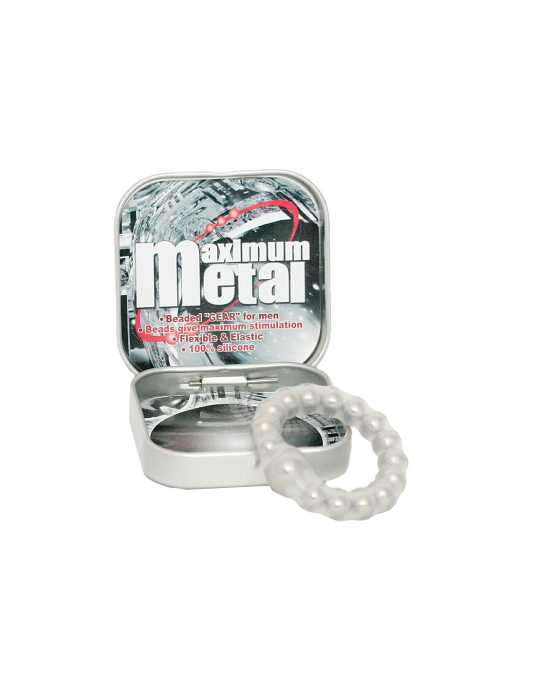 MAXIMUM METAL TRANSPARANT RING W BEADS