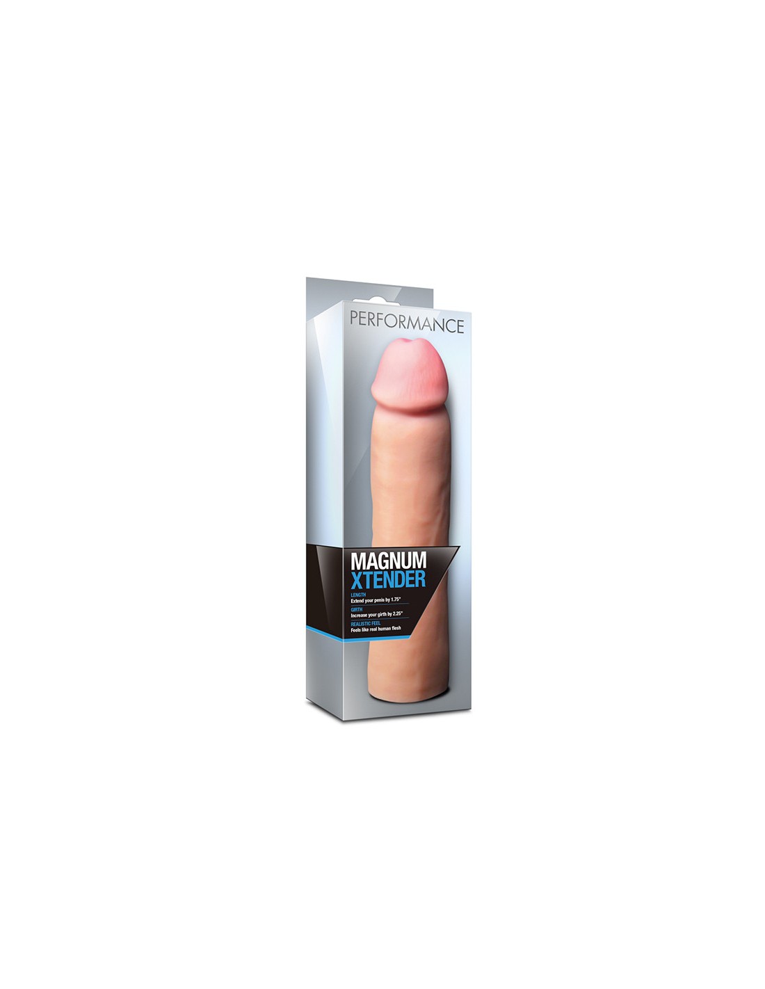 The Magnum Xtender extends your penis by 1.75 inches (4,4 cm) AND increases your girth 3 inches (7,6 cm) all the way around! Your partner will love the new you. The Blush proprietary X5 material was developed to mimic the feel of the human body. It does not contain latex, phthalates or chemical fragrances. That means its body safe. Magnum Xtender warms to body temperature and has just the right amount of give. Stretch it over your erect penis. Enter your partner. Enjoy!