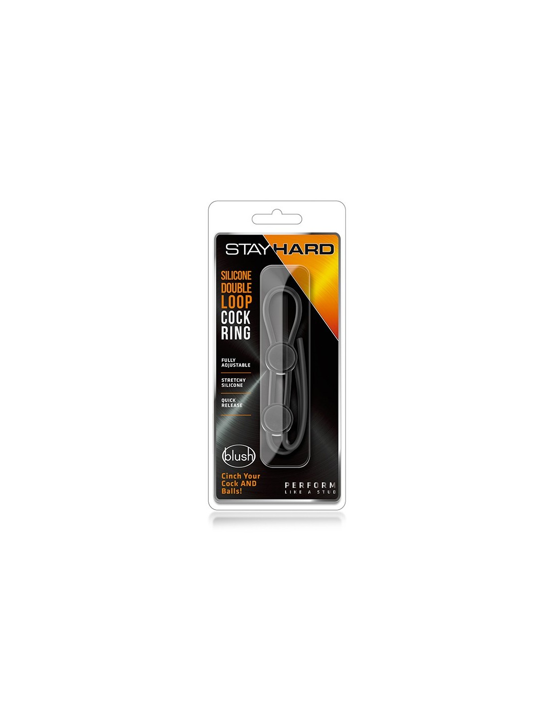 You want maximum performance. The Stay Hard Silicone Double Loop Cock Ring is soft, smooth, and fully adjustable. It features a lasso style locking slide. Push the button on the slide to pull your ring open. Fit your loop to the base of your cock or behind your balls. The second loop can be used to tie around your balls or in any creative configuration you desire. Push the button and tightened the loop to create a tight yet comfortable fit. Your Stay Hard Loop Cock Ring will not pull skin or body hair. Easy to wash with soap and water. You deserve only the best. Go Hard. Stay Hard.