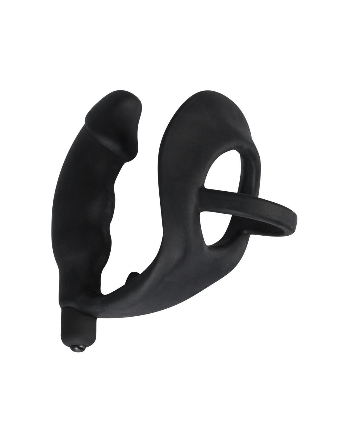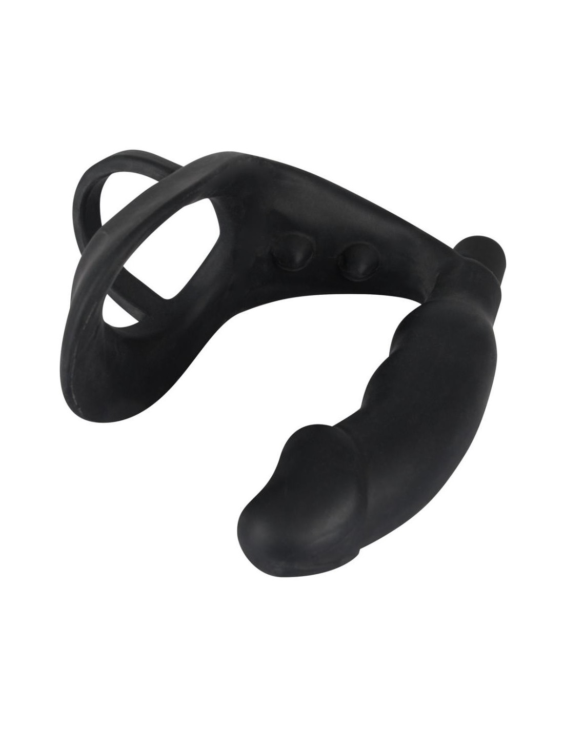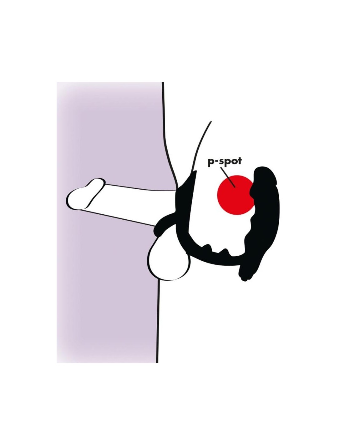Questo anello nero per il pene/testicolo non solo è dotato di un tappo anale aggiuntivo e di un affascinante ponte perineale, ma soprattutto di una vibrazione formicolante con la semplice pressione di un pulsante.