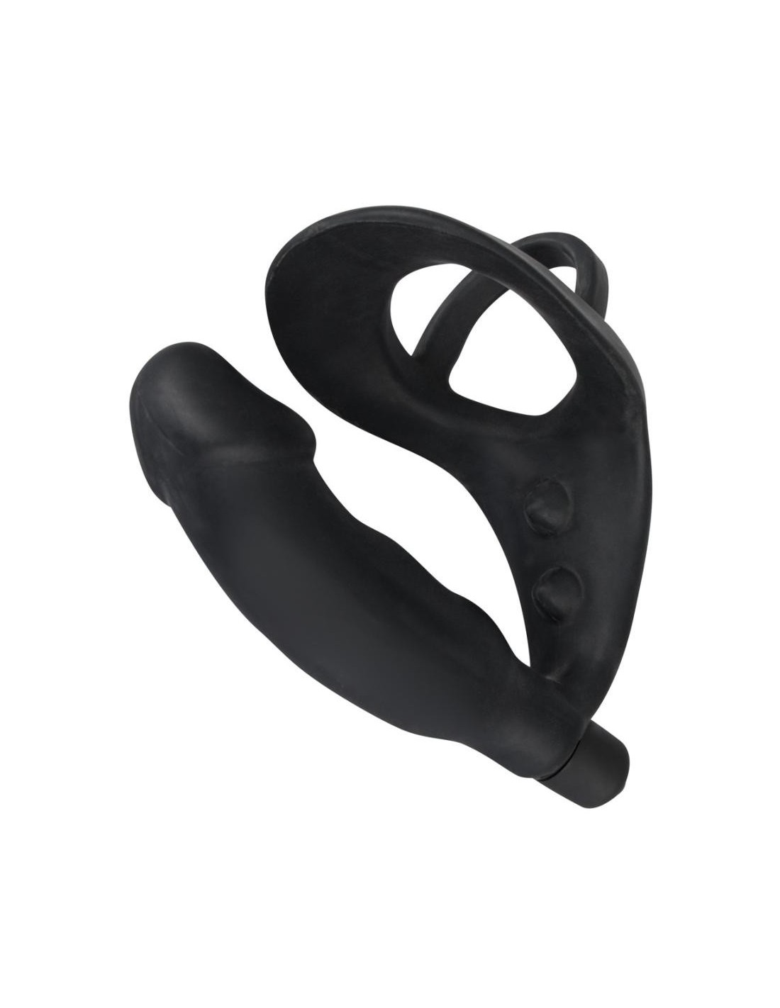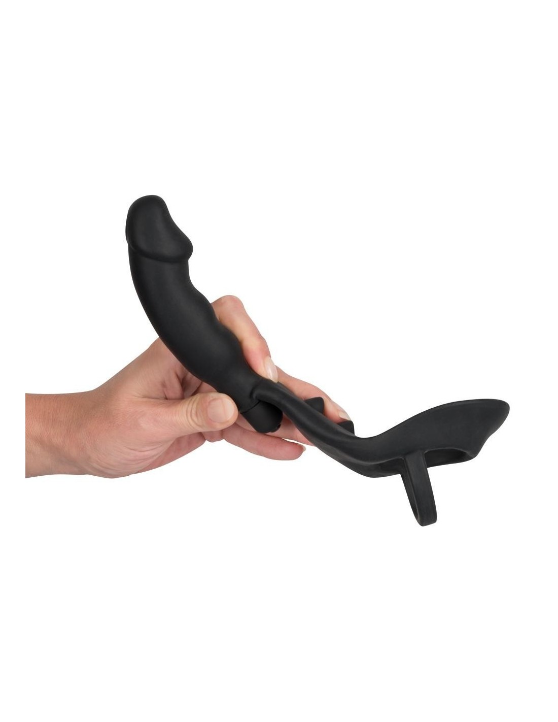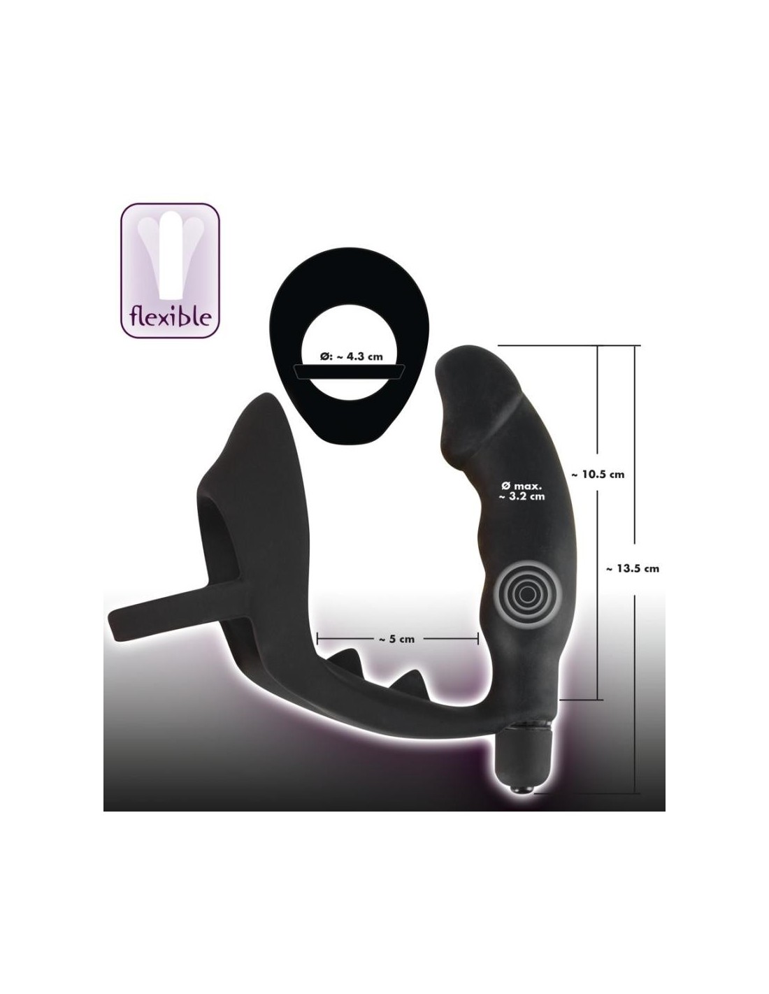 Questo anello nero per il pene/testicolo non solo è dotato di un tappo anale aggiuntivo e di un affascinante ponte perineale, ma soprattutto di una vibrazione formicolante con la semplice pressione di un pulsante.