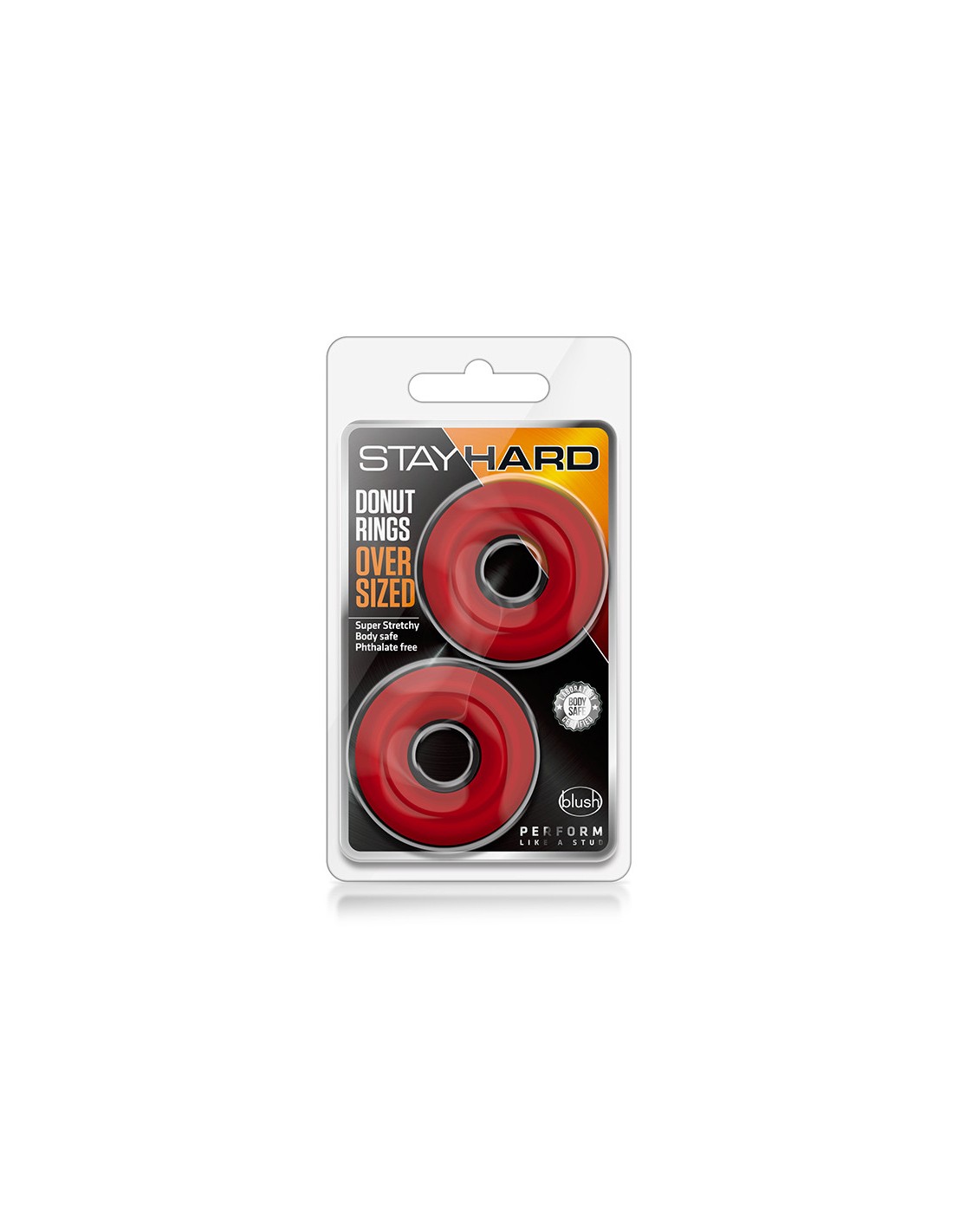 Play stronger and longer with Stay Hard Donut Rings Oversized. 20% thicker than normal donut rings, they'll provide surrounding sensation as you play. Wear one ring around the base of the shaft or both rings at once — around shaft and balls -- for extra stimulation. Stay Hard Donut Rings Oversized are super-stretchy and durable. Made of premium TPE, they're phthalate-free and easy to clean.