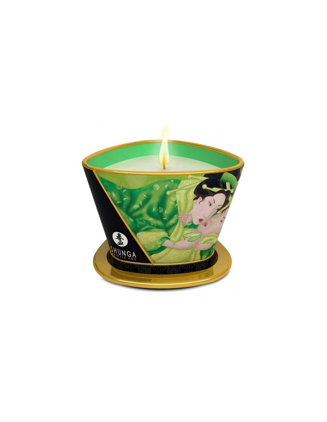 CARESS BY CANDLELIGHT MASSAGE CANDLE - EXOTIC GREEN TEA Candela da massaggio ideale per creare l'atmosfera con la sua profumazione intensa o per cimentarsi in un dolce e carezzevole massaggio. Ispirato all'arte erotica giapponese, la gamma di prodotti Shunga si rivolge agli amanti dell'amore. Un vero e proprio invito al viaggio, questi cosmetici eleganti e raffinati sono pieni di sensualità, entusiasmo e passione. Capacità 170 ml - 6,8 fl oz Colore / Profumo THE VERDE