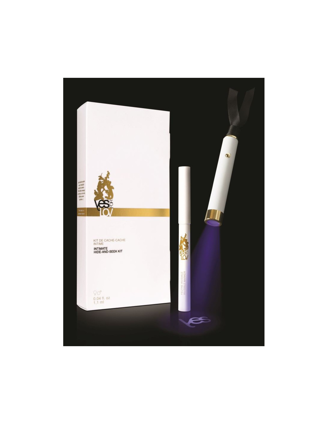 Un pennarello invisibile e una torcia sotto le lenzuola ... Il messaggio nascosto è scritto sulla pelle. (Nascosto quasi ovunque ...). Un nuovo gioco sensuale per spie eleganti. Un pennarello fluorescente che non macchia le lenzuola. La scritta è invisibile fino a quando non viene rivelata dall'indiscreta torcia a luce nera, che completa il kit. Scrivi le parole più segrete sulla pelle nuda e offri il tuo corpo come le pagine tremanti di un libro. Un body marker invisibile e una luce nera (batterie incluse)
