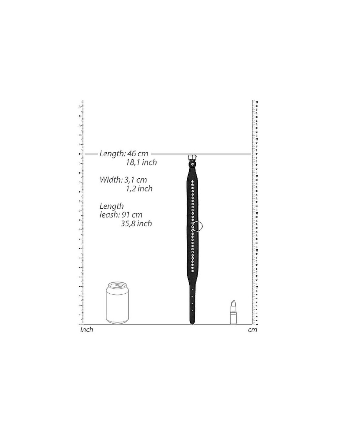 Preparati a dare piacere o riceverlo nell'intensa linea BDSM Diamond. Resistente e alla moda, la perfetta combinazione di solida (finta) pelle e borchie di diamanti eleganti ti trasformerà nell'attrazione principale della notte. Collare e rivendicazione: questo collare regolabile è stupendo da solo, ma è ancora meglio con il guinzaglio. Il collare offre 4 diverse misure ed è robusto, ma confortevole. Il guinzaglio offre la giusta libertà di movimento sia dal punto di vista del comfort che della costrizione. Collare e guinzaglio non possono mancare nel tuo cassetto BDSM. L'aggiunta perfetta ad un problema molto eccitante: è ora di liberare il tuo lato oscuro. Dimensioni imballaggio: 9 x 5 x 17 cm Peso imballaggio: 183 grammi Misure Prodotto: 102 x 0,5 x 3,5 cm Materiale: PU Leather, Foam, Metal
