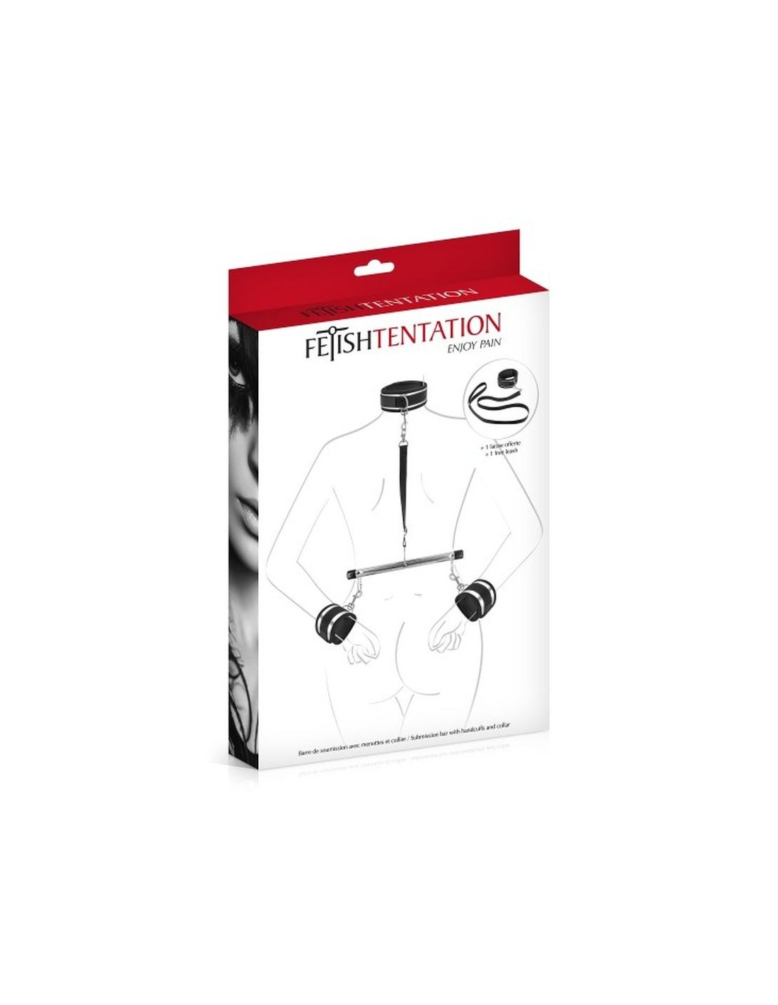 Menottes et collier de soumission Fetish Tentation Punizione e sottomissione sono momenti speciali in cui è fondamentale avere gli accessori giusti Di Fetish Tentation, questo accessorio di sottomissione o bloccaggio dove il partner sarà tenuto a una sbarra per i polsi costringendolo a tenere le mani dietro la schiena. Questo set con barra e manette sono attaccati a una cinghia che si alza e termina in un collare dotato di guinzaglio, non c'è più modo di scappare, dovrai sopportare. Le manette, le cinghie posteriori e il colletto sono regolabili. Contiene: 2 manette, una barra, una cinghia, un collare, un guinzaglio