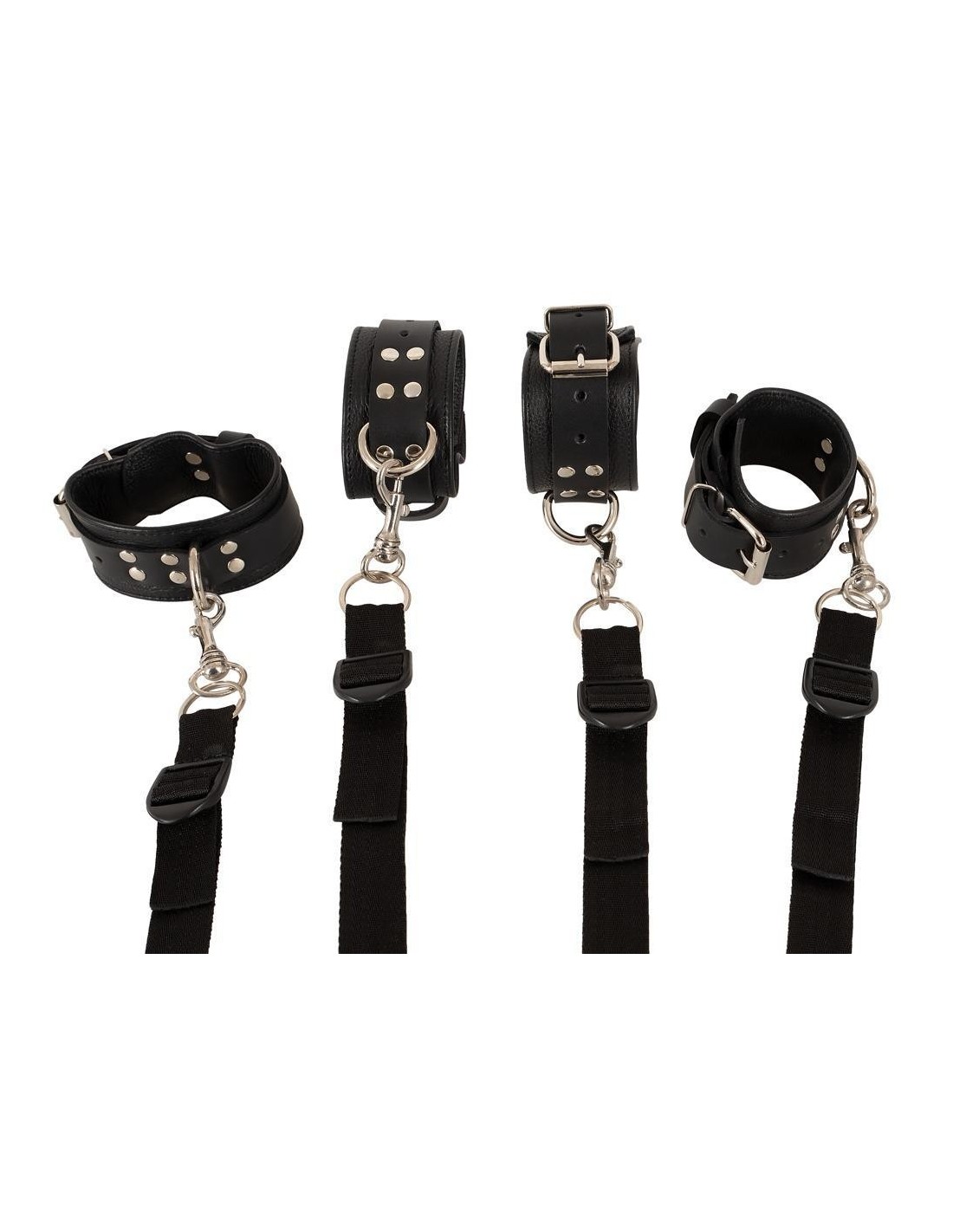 Con questo set di costrizione da letto di ZADO, qualsiasi letto può essere trasformato in un parco giochi bondage professionale. Il sistema di cinture ad H, composto da cinghie di rete regolabili e resistenti agli strappi, si adatta a qualsiasi materasso. I polsini in pelle per mani e piedi vengono poi agganciati ai 4 moschettoni su ciascuna delle cinghie. I comodi polsini per mani e caviglie, realizzati in pelle robusta, sono dotati di fibbie e possono quindi essere regolati per adattarsi alla circonferenza.
