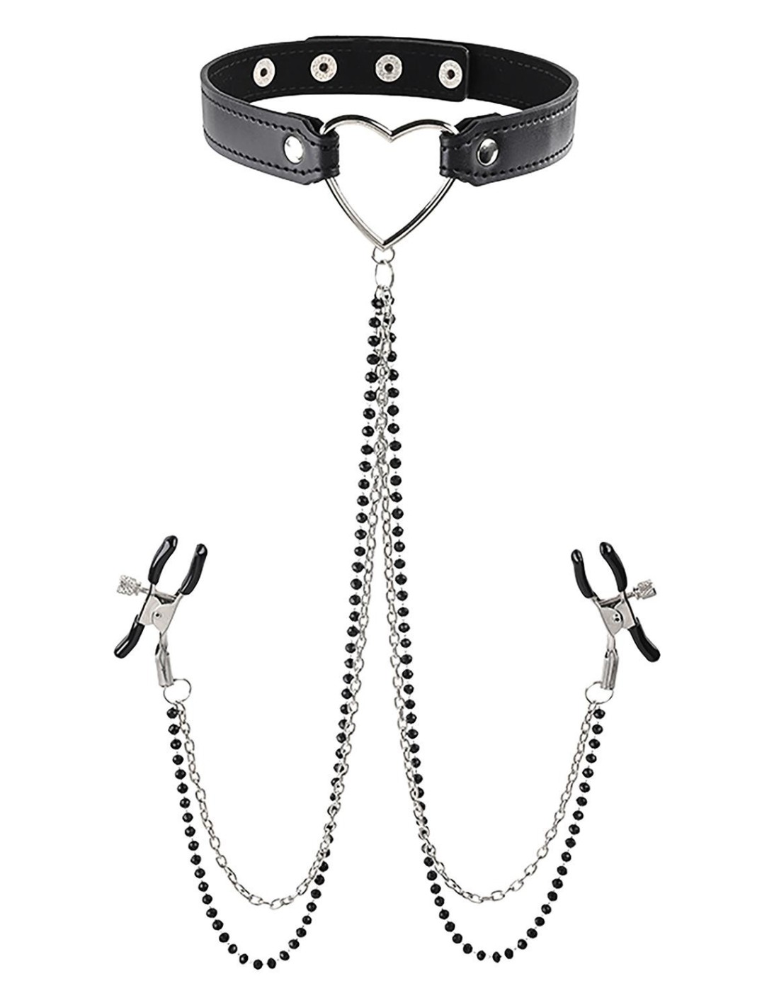 Introduce the teasing torment of nipple play to your next scene with the Amor Nipple Clamps. Equipped with tension adjustments, you or your partner can easily control the pleasure and the pain. The heart choker adds a delectably romantic touch to this BDSM must-have.