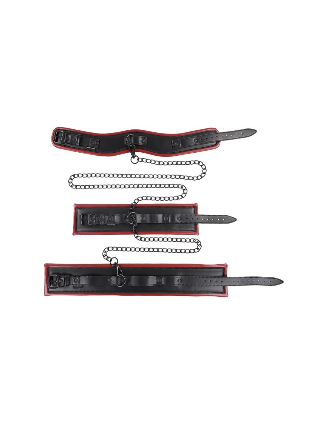 Strap them in, things are about to get hot. Enhance your next scene with the Saffron Chained &, Tamed, expertly designed to keep your partner at your mercy. Use all the pieces together or interchangeably for optimum positioning. Begin your next session with the posture collar for added control. Then add the double wrist cuff to lock their hands together and the double ankle cuff to keep them in place. Next, connect the cuffs and collars how you see fit and exude your power over them.