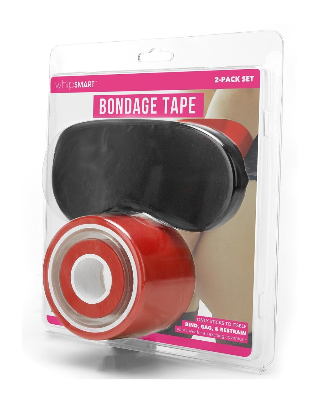 Create any restraint desired with this pack of easy-to-use self-adhesive and surprisingly strong bondage tape! Suitable for complete novices of bondage play as well as fetish aficionados, this tape is extremely versatile for all levels of play. Create all kinds of restraints on any part of your lover's body. The tape is easy to remove with no sticky residue, perfect for a quick hand cuff or intricate body wrapping -- comes with a free satin eye mask for even more fun! Thanks to the no-glue design the tape will not damage skin, furniture, or clothing, so you can relax and enjoy the full sensory experience.