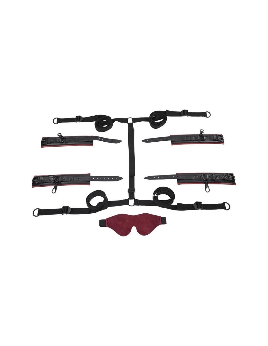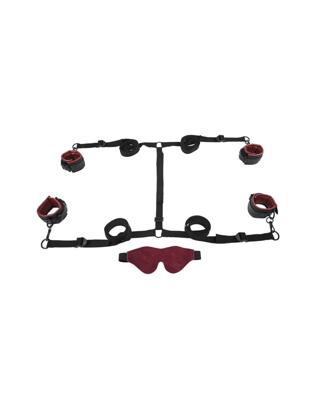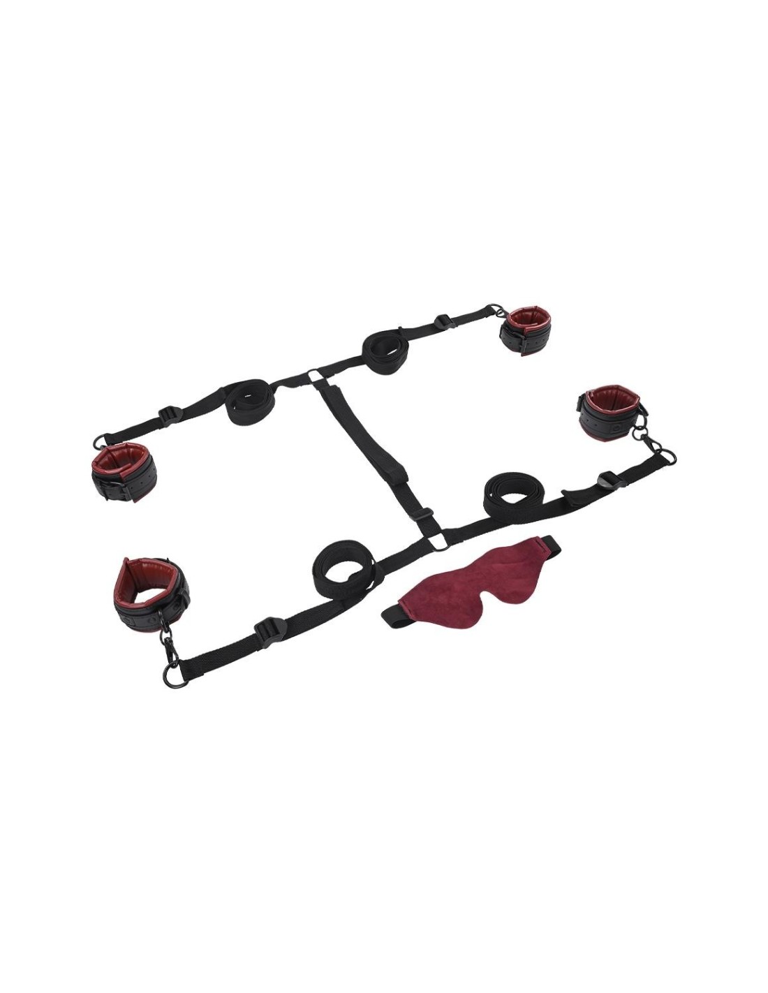 The original (yes, we invented it) Under the Bed Restraint System just got a sultry and seductive new look! Set up in minutes, the alluring deep reds create a lust filled setting made for the naughtiest play. Four luxurious adjustable cuffs in soft and supple faux leather with restraint straps secure to one center connector strap fitting securely under your mattress.