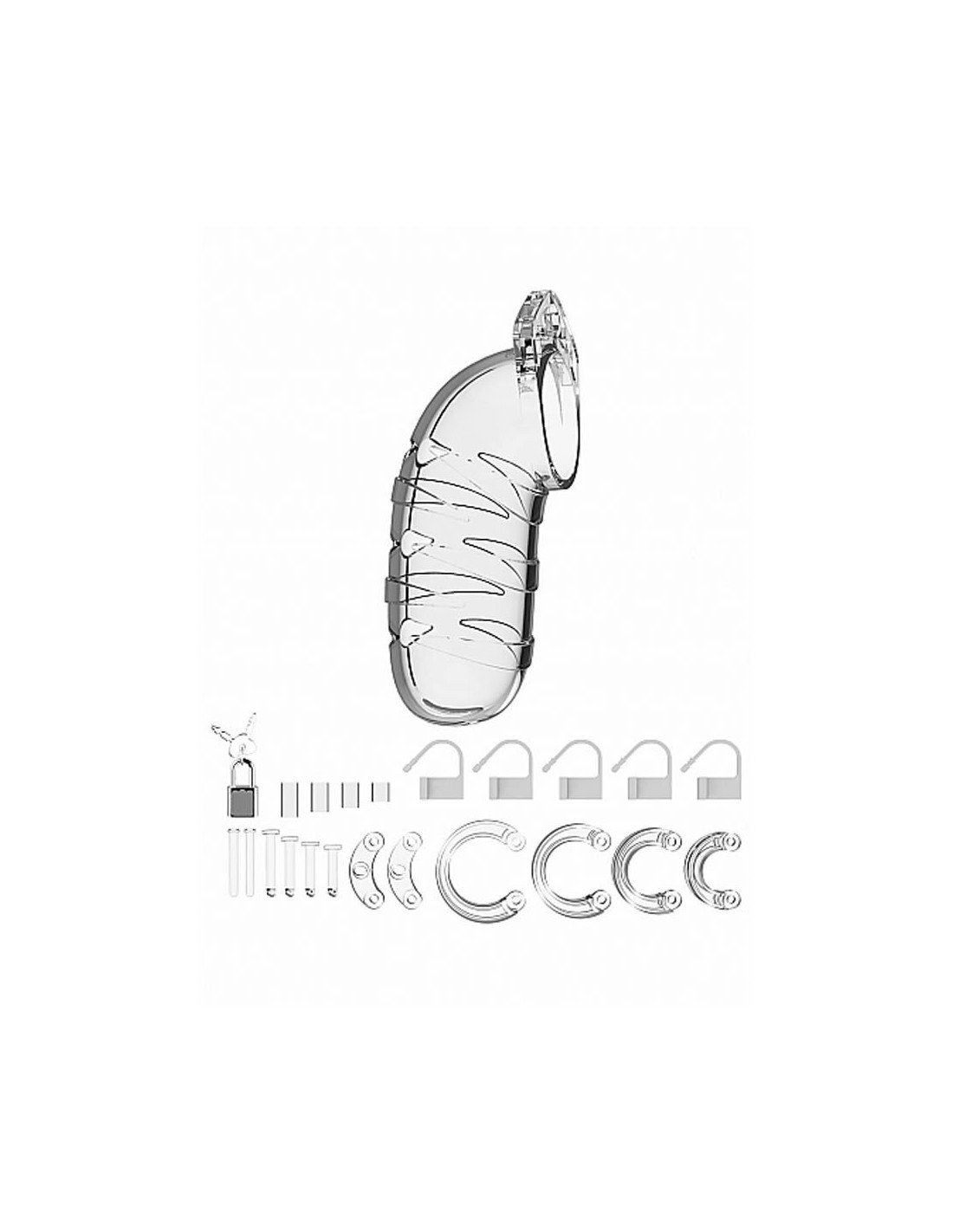Model 05 - Chastity - 5.5" - Cock Cage - Transparent INNALZA IL LIVELLO DEI TUOI GIOCHI BDSM! CONTROLLARE O ESSERE CONTROLLATI, QUESTO È IL PROBLEMA! Le cinture di castità Man|Cage sono realizzate in policarbonato di alta qualità, un materiale leggerissimo, robusto e ipoallergenico. La gabbia è costituita da tre parti, perfettamente combacianti tra loro. I due perni guida collegano le parti superiori, mentre la spina conica ovale collega gli anelli alla gabbia. La presenza di anelli di varie dimensioni e di distanziatori ti permetterà di ottenere la taglia perfetta per te! Gli anelli sono comodi da indossare e assolutamente sicuri. Un lucchetto in metallo o una chiusura a fascetta permette il facile bloccaggio della gabbia. Le fascette incluse ti garantiranno di non mettere in allarme i metal detector quando ti recherai a un party, un festival o persino all'aeroporto! Poiché l'igiene è un fattore di primaria importanza quando si indossa una gabbia, le linee Man|Cage sono dotate di numerosi punti di ventilazione e di un apposito foro per la minzione. La gabbia rende impossibile l'erezione, che sarà però intensissima una volta liberato il membro, proprio come l'orgasmo che ne seguirà! La gabbia di castità Man|Cage regalano a chi la indossa il massimo controllo sulla gratificazione sessuale! Specifiche - Materiale: ABS - Lunghezza: 14 cm - Anelli regolabili: diametro esterno 4,5 cm - 5 cm - 5,5 cm - 6 cm - 100% waterproof: Si - Phthalate free: Si Dimensioni: 16 x 16 x 7,80 cm Peso: 359 grammi