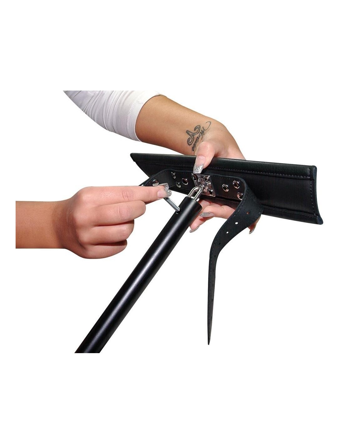 “Set da costruire” inclusi accessori per il montaggio e due supporti con diverse lunghezze per il collare. Con poche mosse la gogna si monta e si smonta in un baleno: basta fissare, alla struttura metallica rapidamente montata, i costrittivi morbidamente imbottiti per collo, mani e piedi. Tutti i costritti sono regolabili con chiusure a fibbia. Nero. Materiale: pelle, metallo.