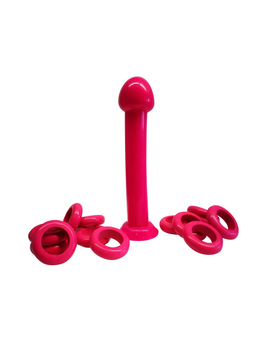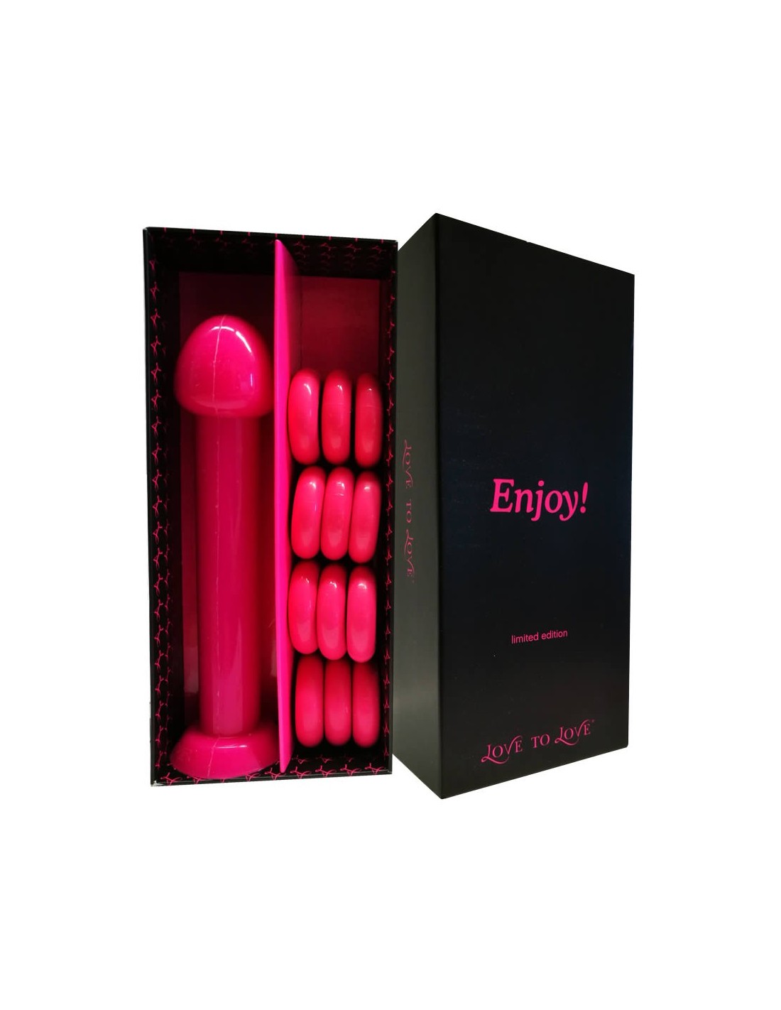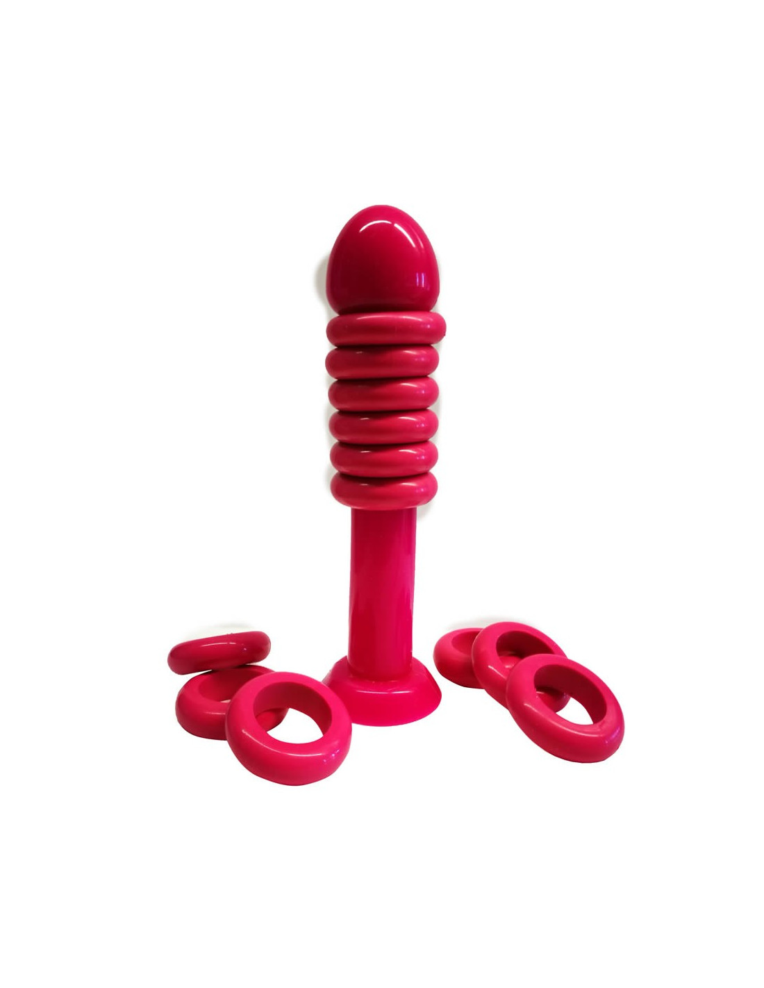 ENJOY Un dildo con un sofisticato design, progettato da Marine Peyre. Realizzato in silicone liscio e compatto, questo dildo ha una serie completa di anelli che puoi infilare nel suo albero per poterlo personalizzare ogni volta che vuoi. Il dildo ha una punta liscia enfatizzata e affusolata e un gambo stretto quando sprovvisto di anelli. La base flessibile e' provvista di ventosa che consente di collegare il dildo a superfici liscie e dure per un utilizzo a mani libere. Realizzato in silicone ipoallergenico, semplice da usare, ottimo per godere! - 12 anelli rimuovibil - Dotato di ventosa alla base Materiali: 100% silicone ipoallergenico Lunghezza: ca. 18,5 cm. Diametro: 4 cm.