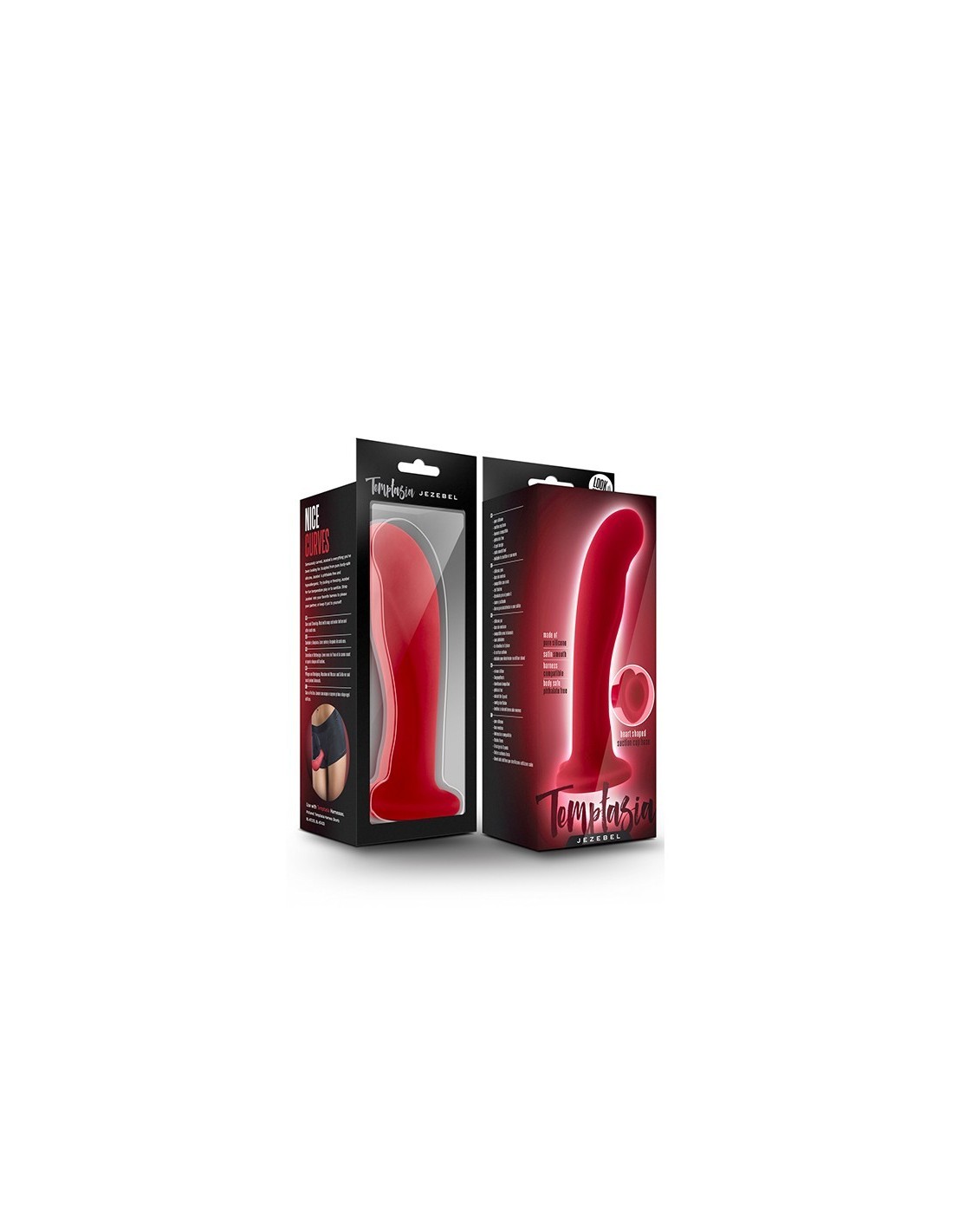 Soft and sensuously curved, Jezebel is designed to massage the G spot or prostate. Sculpted from pure body-safe, platinum cured silicone. The silky-smooth shaft is 15,8 cm in length (13,3 cm of insertable length) and measures 3,8 cm in diameter at its widest point. Jezebel is non-porous, and easy to clean. It warms with your body or by running under warm water. This sexy toy is harness compatible, features a heart shaped, strong suction cup base and has been crafted with your pleasure in mind.