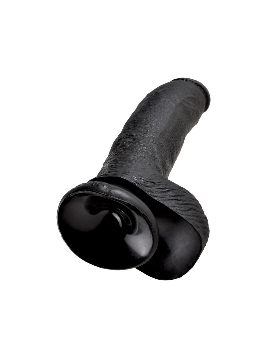Questo dildo ha un aspetto dettagliato del pene con un glande rigonfio, venature pronunciate e testicoli aderenti. Grazie al suo design leggermente curvo, si rivolge precisamente a tutti i punti di piacere. La base a ventosa stabile fornisce una presa sicura e permette corse a caldo. È anche compatibile con gli strap-on.