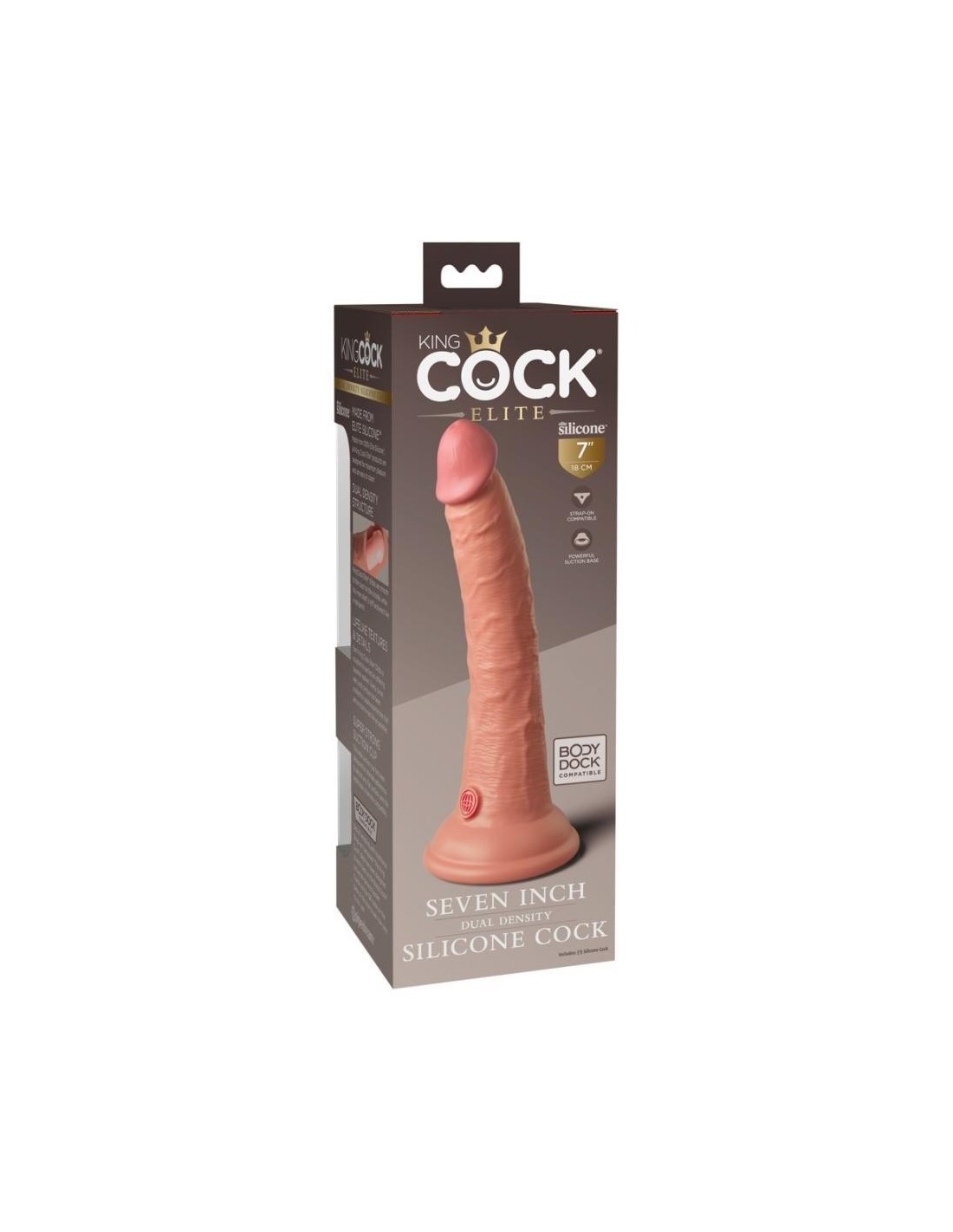 Splendido dildo 7" Dual Density Silicone Cock di King Cock Elite in look iper-realistico del pene fatto di materiale siliconico a doppia densità che si sente come la vera pelle. Il dildo stesso ha un'asta ferma, ma flessibile che assume qualsiasi posizione.