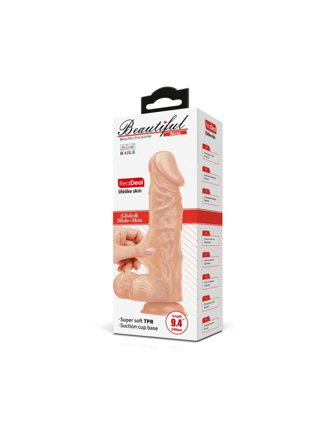 TPR estremamente morbido come la pelle naturale per una sensazione realistica! Fallo realistico extra large con glande prominente e venature pronunciate per sensazioni di piacere particolarmente intense. Con testicoli e una forte ventosa per il divertimento a mani libere. Con una lunghezza totale inseribile e una circonferenza di pollici considerevoli, il dildo vi soddisferà sicuramente.