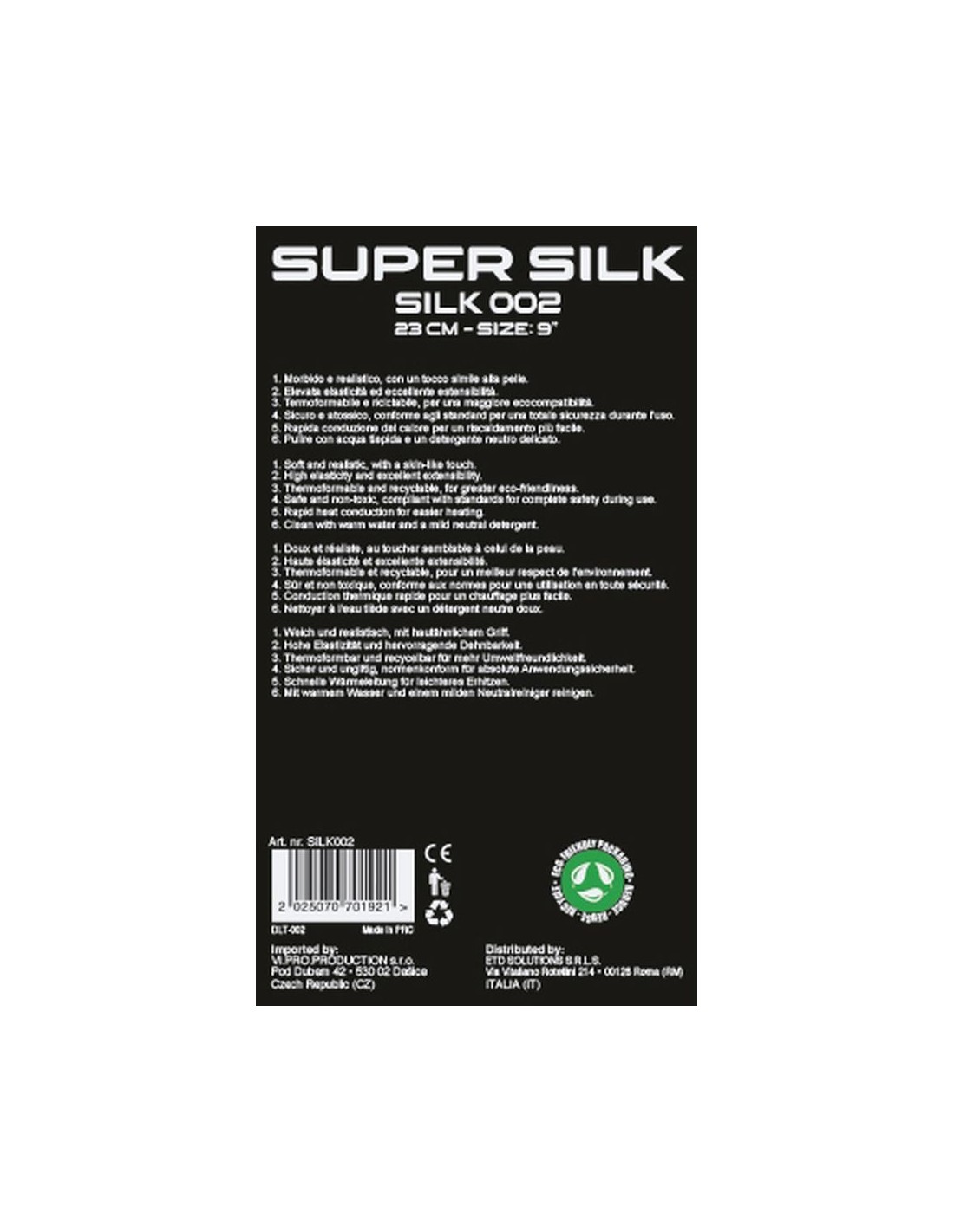 - Morbido e realistico, con un tocco simile alla pelle - Elevata elasticita' ed eccellente estensibilita' - Termoformabile e riciclabile, per una maggiore ecocompatibilita' - Sicuro e atossico, conforme agli standard per una totale sicurezza durante l'uso - Rapida conduzione del calore per un riscaldamento piu' facile - Pulire con acqua tiepida ed un detergente neutro delicato