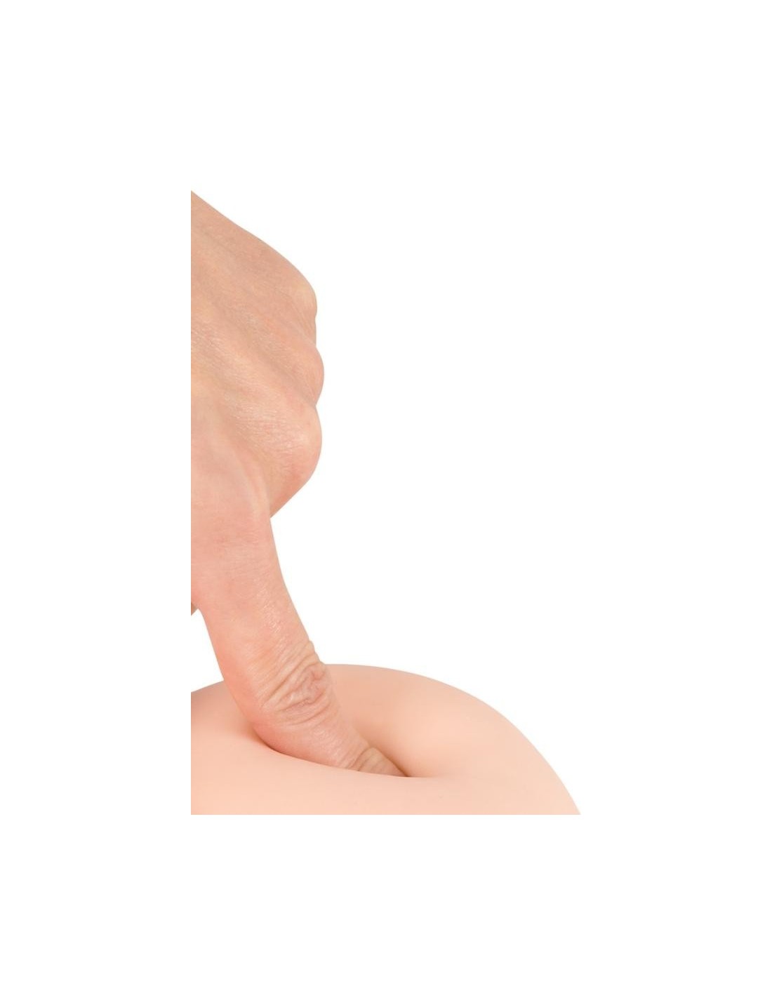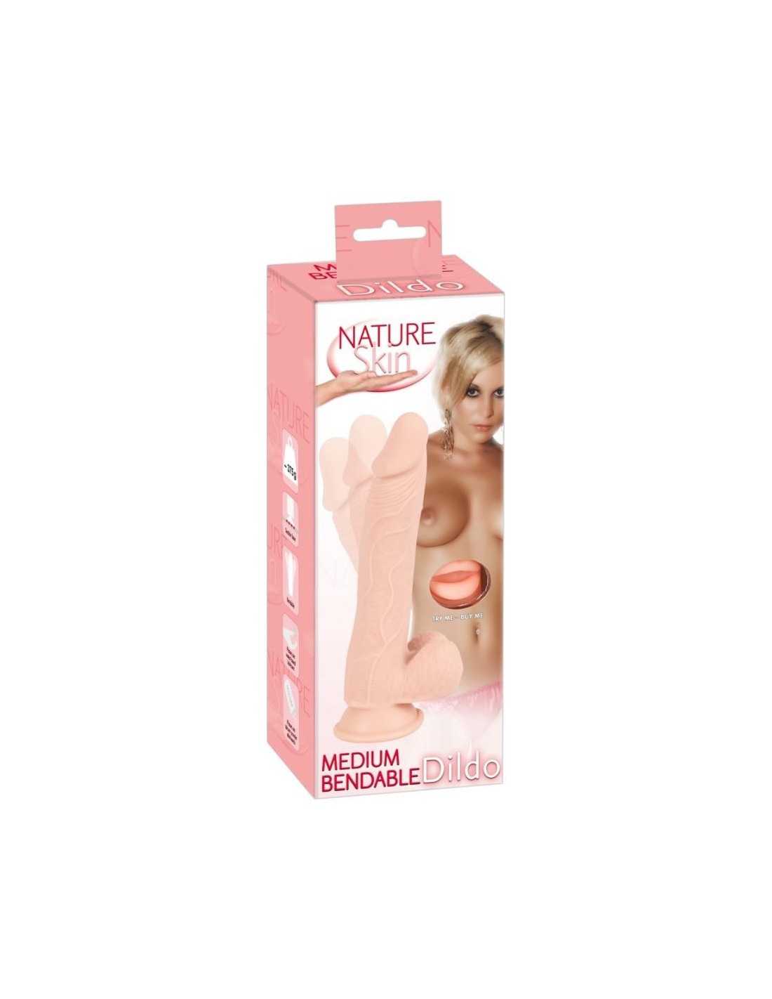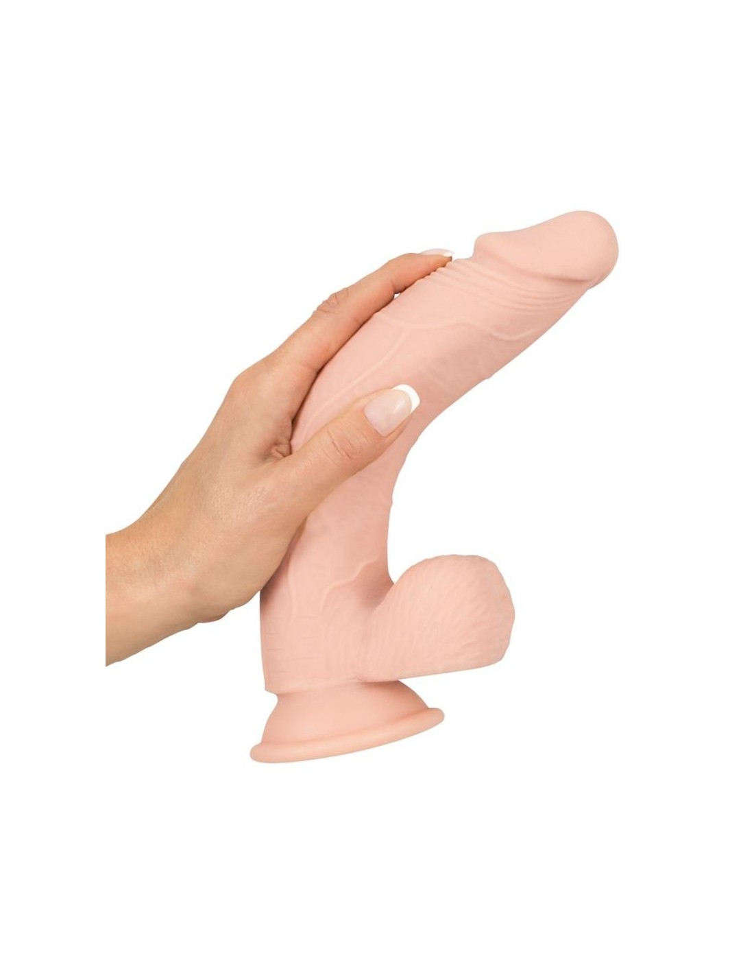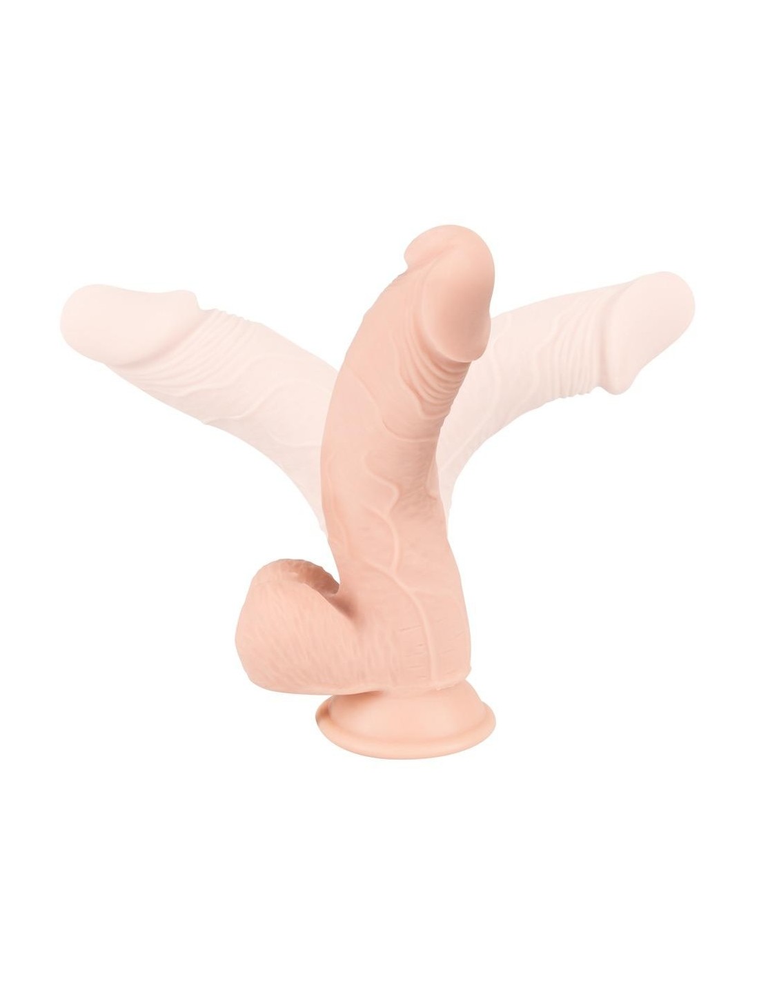 Dildo dall'aspetto dettagliato di pene con glande turgido, asta venata e testicoli rugosi. La particolarità di questo dildo è che è flessibile e mantiene la posizione senza oscillare all'indietro (è possibile una flessione massima di 30 gradi). Su base di aspirazione