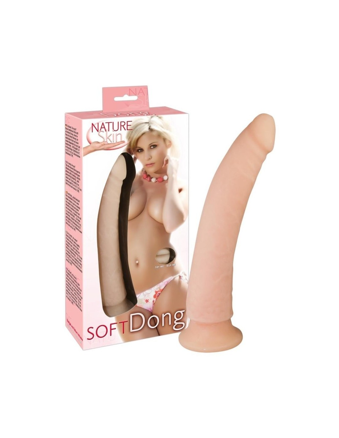 Morbido dong flessibile di Nature Skin con aspetto di pene realistico, superficie venata (pelle) e glande modellato. Con una base di aspirazione che aderisce saldamente e in modo sicuro a qualsiasi superficie liscia, consentendo il piacere a mani libere. Il dildo è compatibile anche con strap-on e orinatoi.
