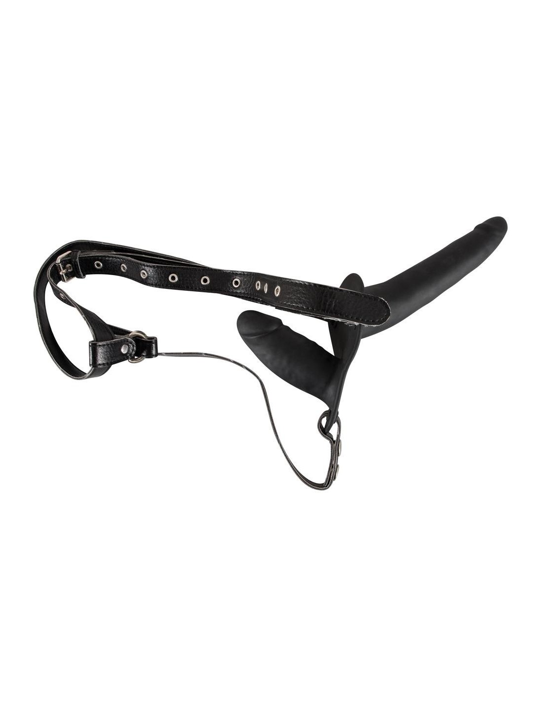 Doppio perizoma strap-on in silicone nero di You2Toys con dildo interno e dildo esterno per un piacere profondo mentre chi lo indossa si sta facendo godere. Il perizoma strap-on, realizzato in elegante similpelle, può essere regolato per ottenere una perfetta vestibilità e un'aderenza salda e confortevole.