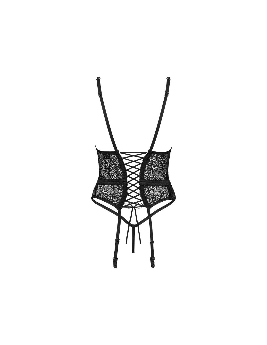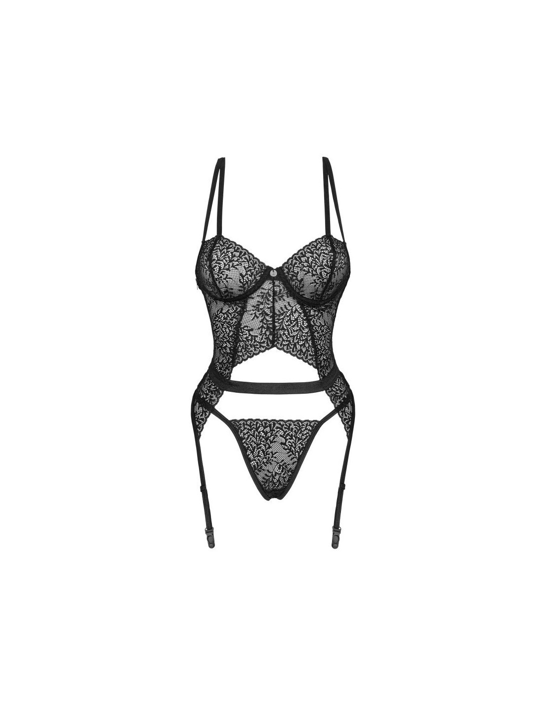 Corsetto e perizoma in pizzo della collezione Yaskana. Eleganza classica in una versione molto moderna e sexy. Le spalline sottili e i ritagli sensuali sottolineano in modo unico l'aspetto della figura. L'allacciatura incrociata sul retro attira l'attenzione, essendo una soluzione molto comoda che permette all'intimo di adattarsi perfettamente alla forma del corpo. Scopri maggiori dettagli: Corsetto e perizoma Yaskana cinghie regolabili – vestibilità perfetta reggiseno con ferretto – bell'aspetto e supporto perfetto per il seno ciondolo gioielli in argento tra i seni – un dettaglio elegante ritaglio sexy sulla pancia: un elemento sensuale cinturino aggiuntivo sopra la linea dell'anca – forme enfatizzate schiena scoperta con comoda allacciatura incrociata: la garanzia di una perfetta aderenza alla forma del corpo reggicalze regolabili perizoma abbinato incluso materiali flessibili e piacevoli al tatto (90% poliammide, 10% elastan)