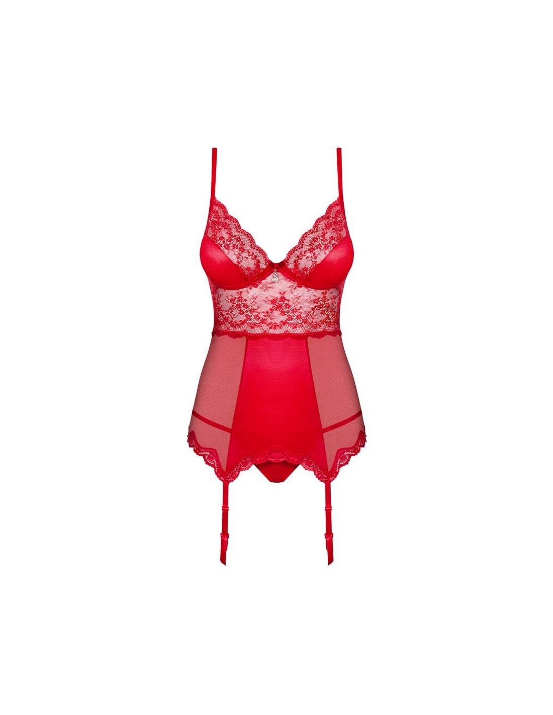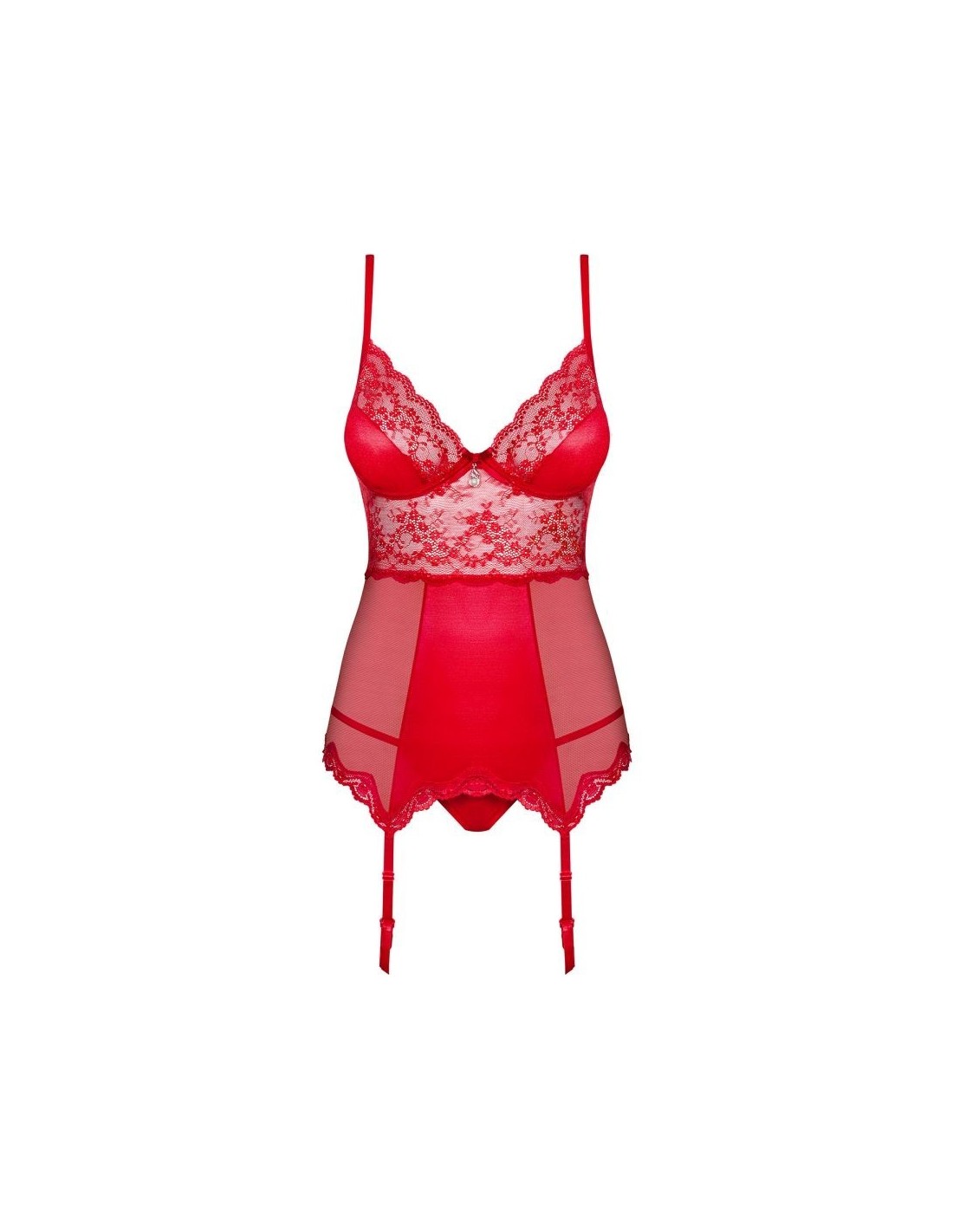Set reggicalze e perizoma Lovica rosso di Obsessive. Reggicalze in un sofisticato mix di materiali con pizzo, tulle e raso. Elasticizzato e morbido per un elevato comfort. Con elemento gioiello tra le coppe con ferretto. Le spalline e il reggicalze sono regolabili. Perizoma in raso.