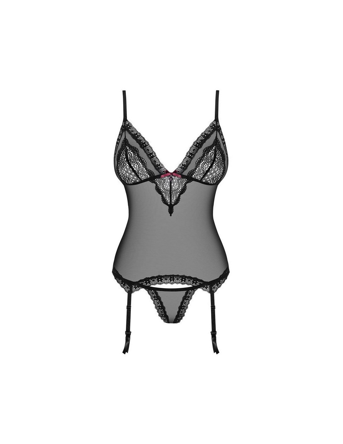 The path leading straight to his heart? This tempting corset will show you the right way and it will guarantee a really enjoyable journey! Are you ready to get it started? Black mesh, gorgeous lace, seductive cut – follow these directions and have an unforgettable adventure! Look what you’ll get: - stunning corset made out of sheer mesh - adjustable straps - lacy inserts on cups and below breasts – sexy bust look! - neckline adorned with purple bow and glossy stone - adjustable garters – easy to match with stockings - the product includes corset and panties - nice, delicate and stretchable fabrics (94% polyamide, 6% elastane)