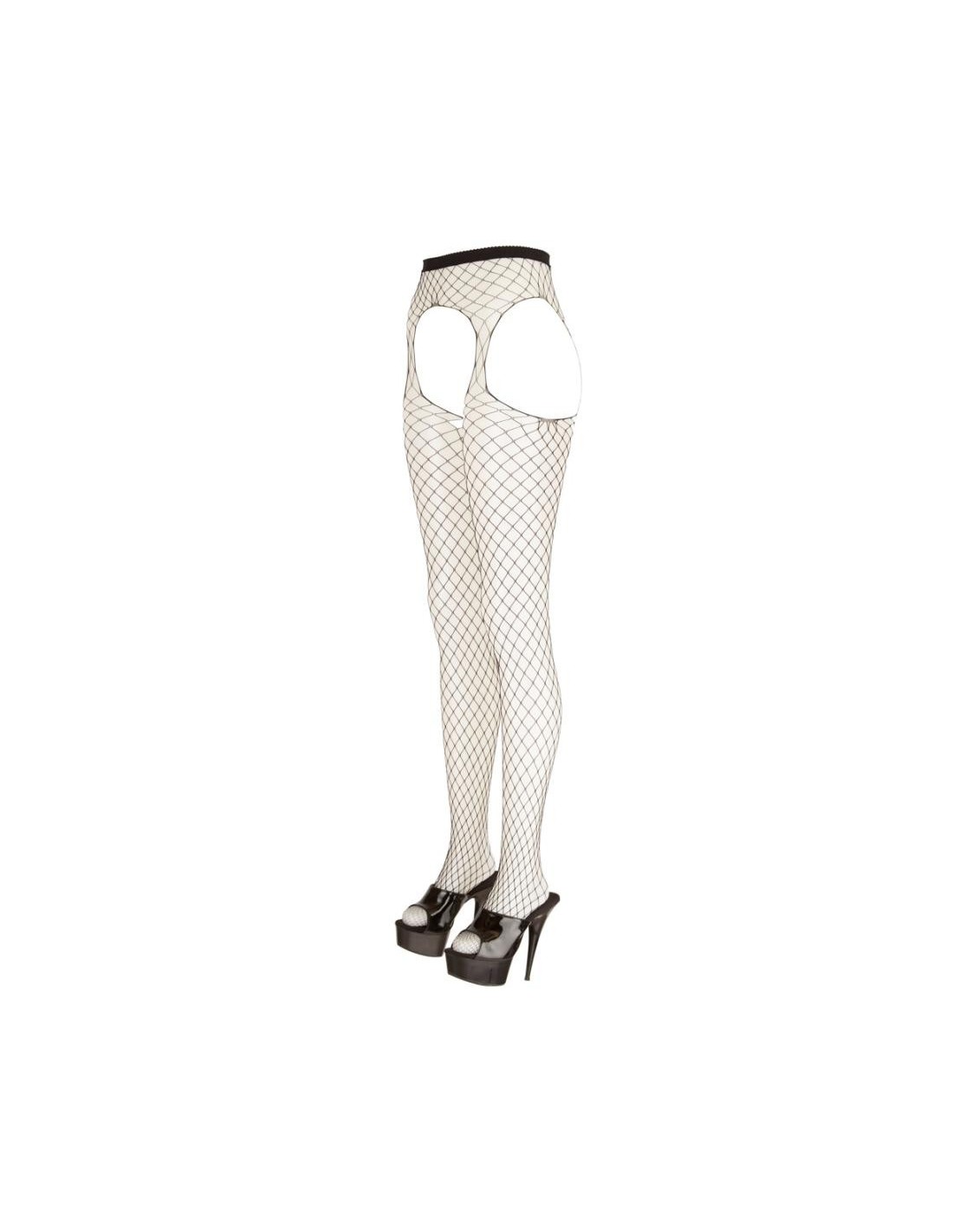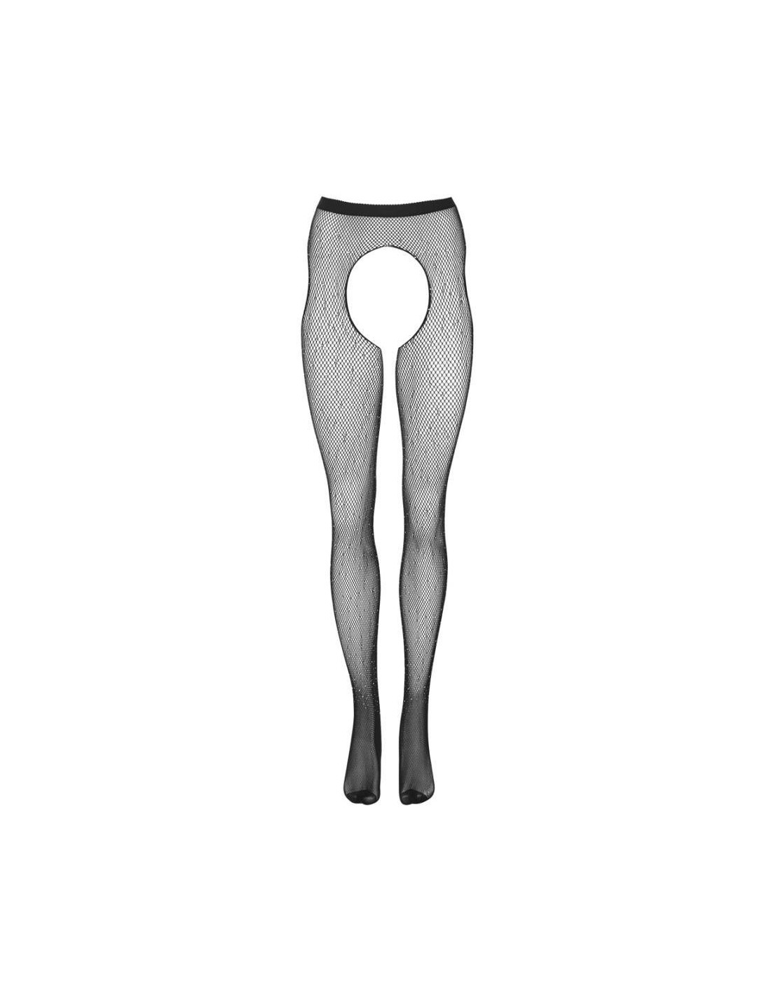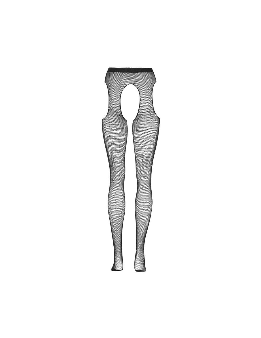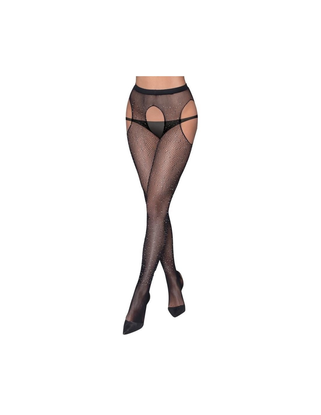 Collant con reggicalze con cavallo aperto e tagli ai lati. Il morbido materiale a rete, tempestato dappertutto di pietre glitter di diverse dimensioni, assicura l'andatura scintillante-elegante, la qualità molto elastica con la zona della punta rinforzata per un elevato comfort.