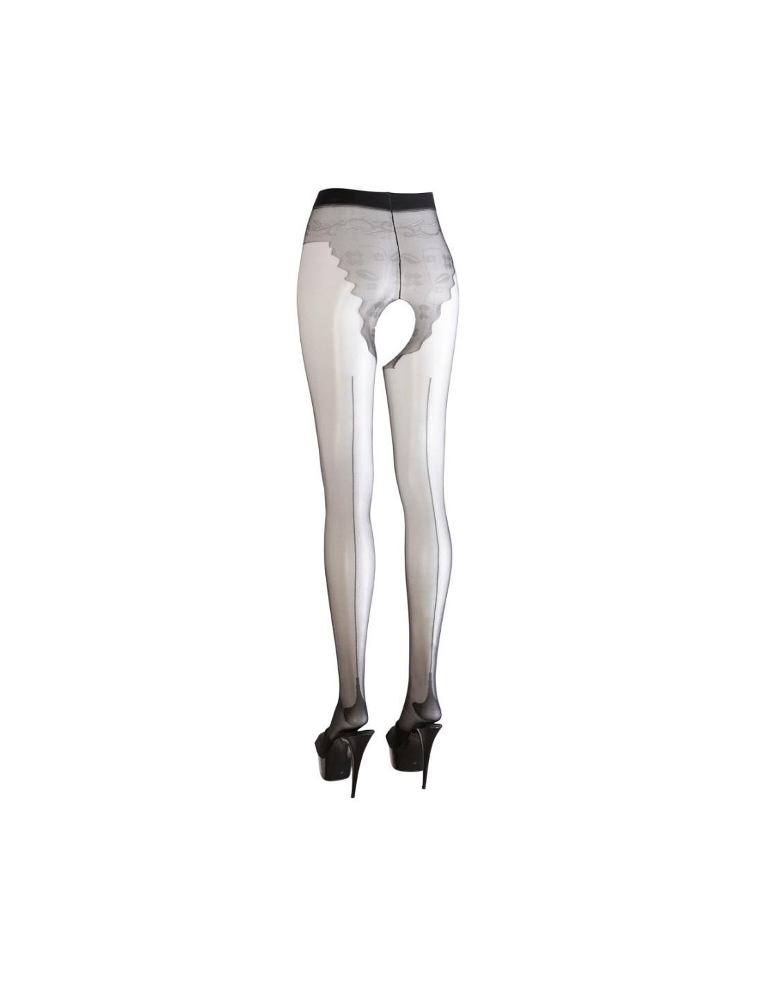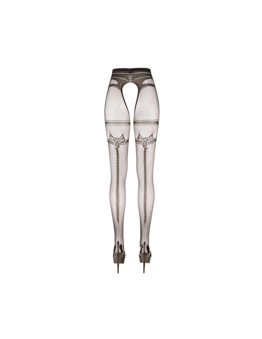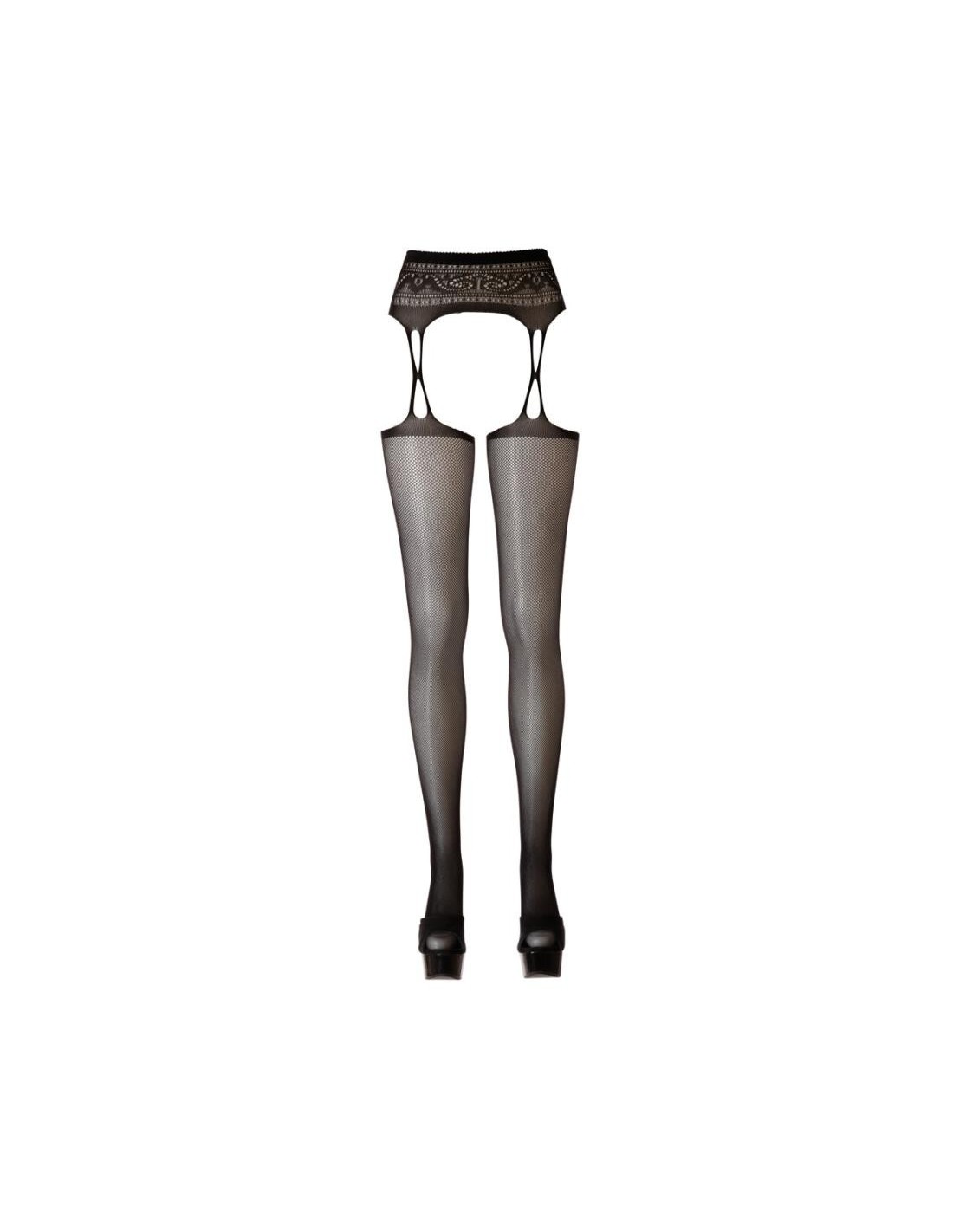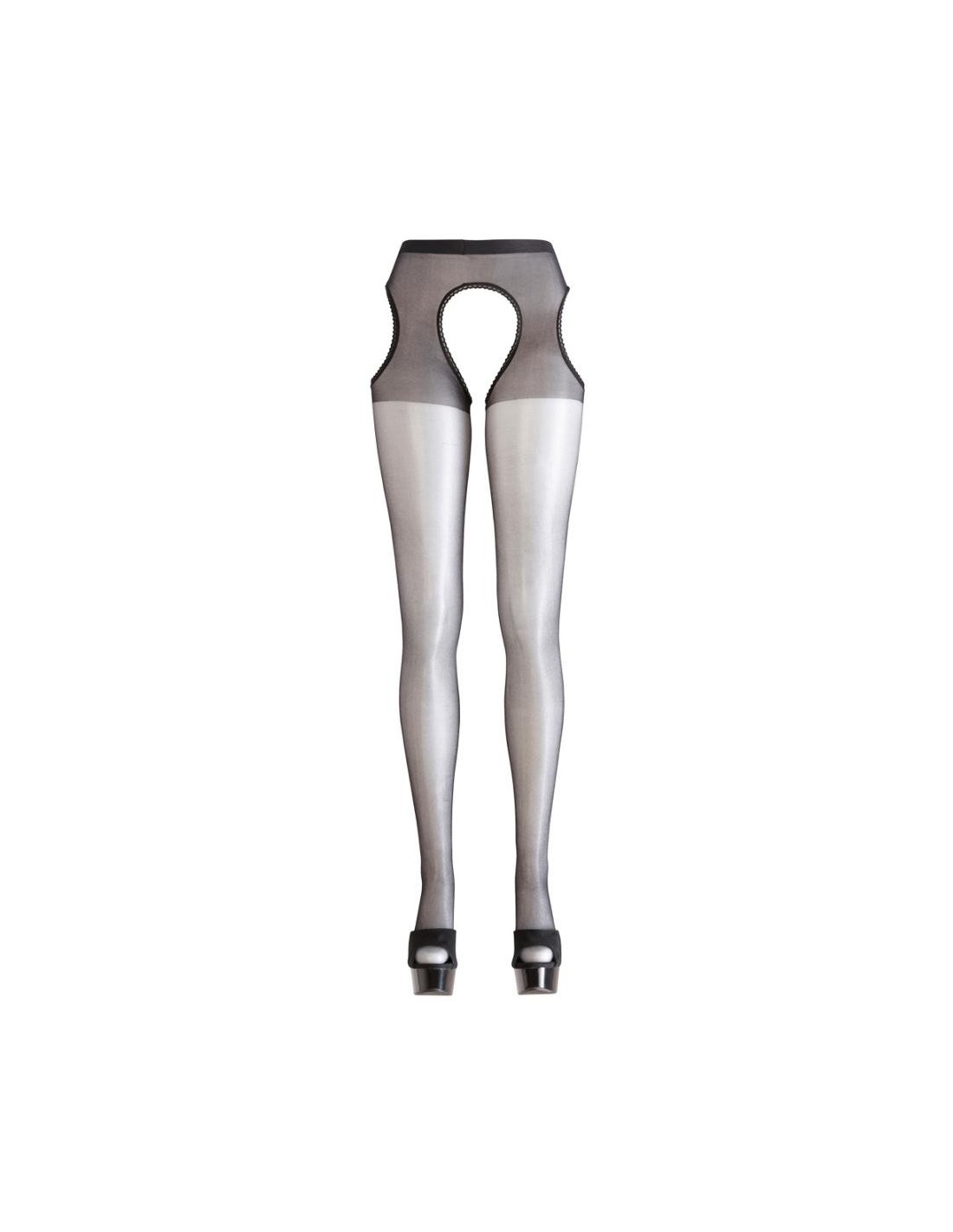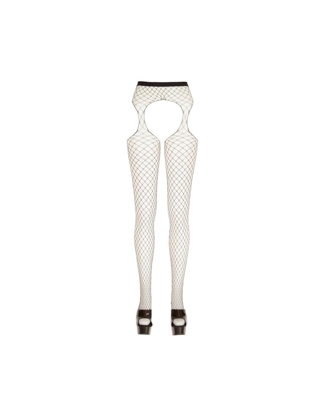 Collant con reggicalze con cavallo aperto e tagli ai lati. Il morbido materiale a rete, tempestato dappertutto di pietre glitter di diverse dimensioni, assicura l'andatura scintillante-elegante, la qualità molto elastica con la zona della punta rinforzata per un elevato comfort.