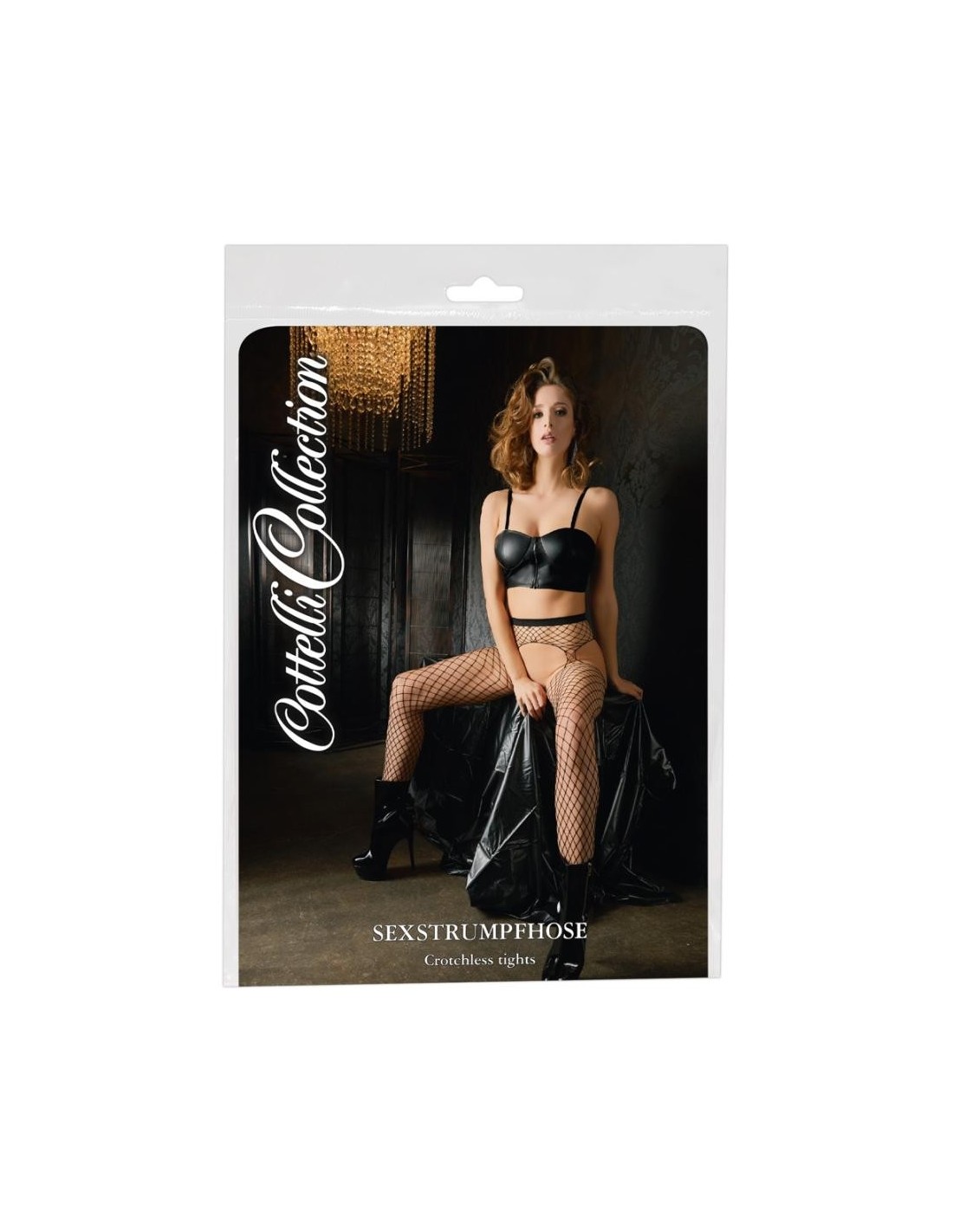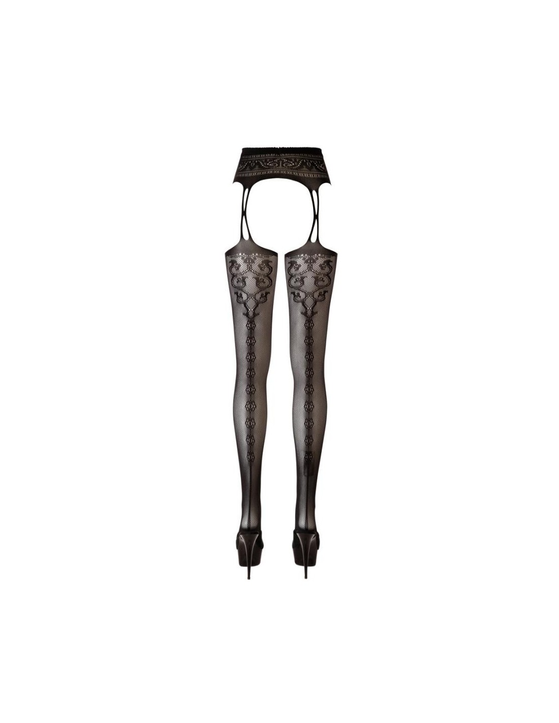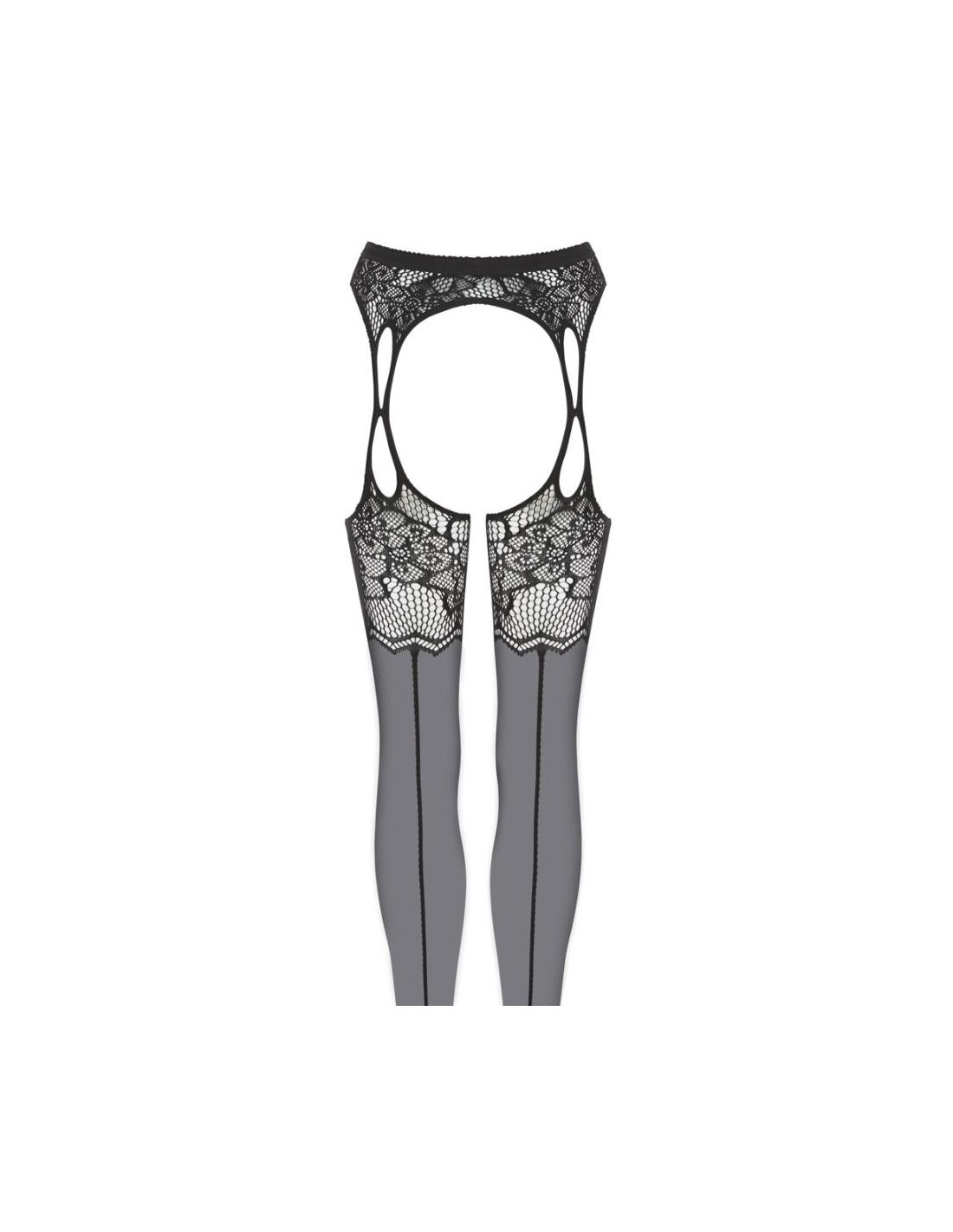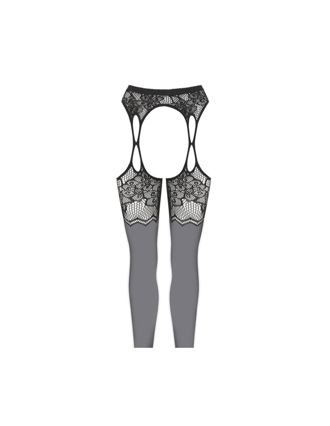 Collant con reggicalze con cavallo aperto e tagli ai lati. Il morbido materiale a rete, tempestato dappertutto di pietre glitter di diverse dimensioni, assicura l'andatura scintillante-elegante, la qualità molto elastica con la zona della punta rinforzata per un elevato comfort.