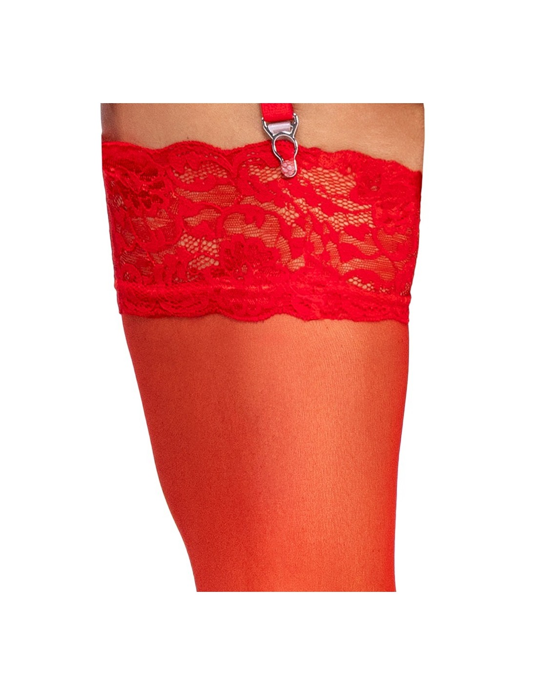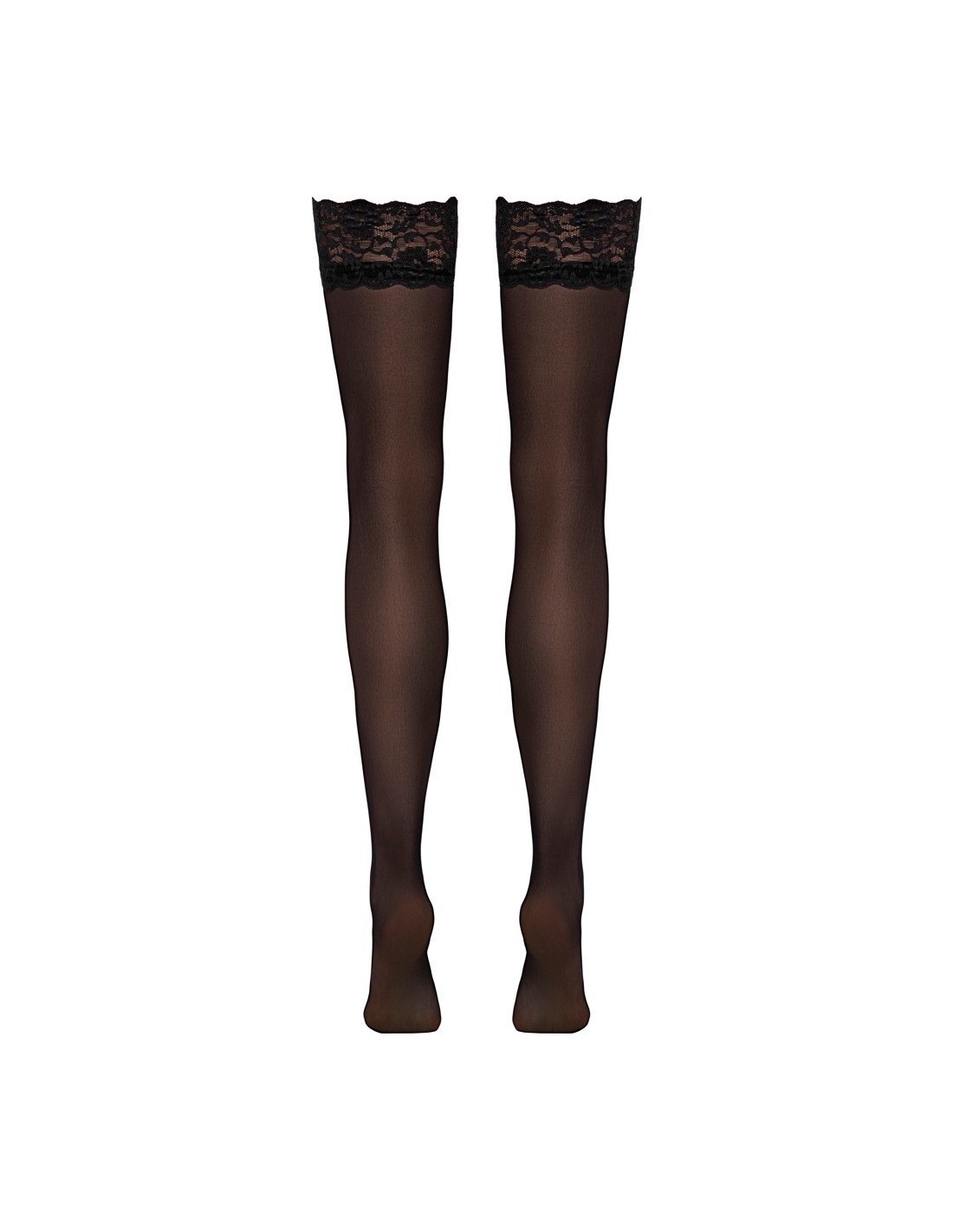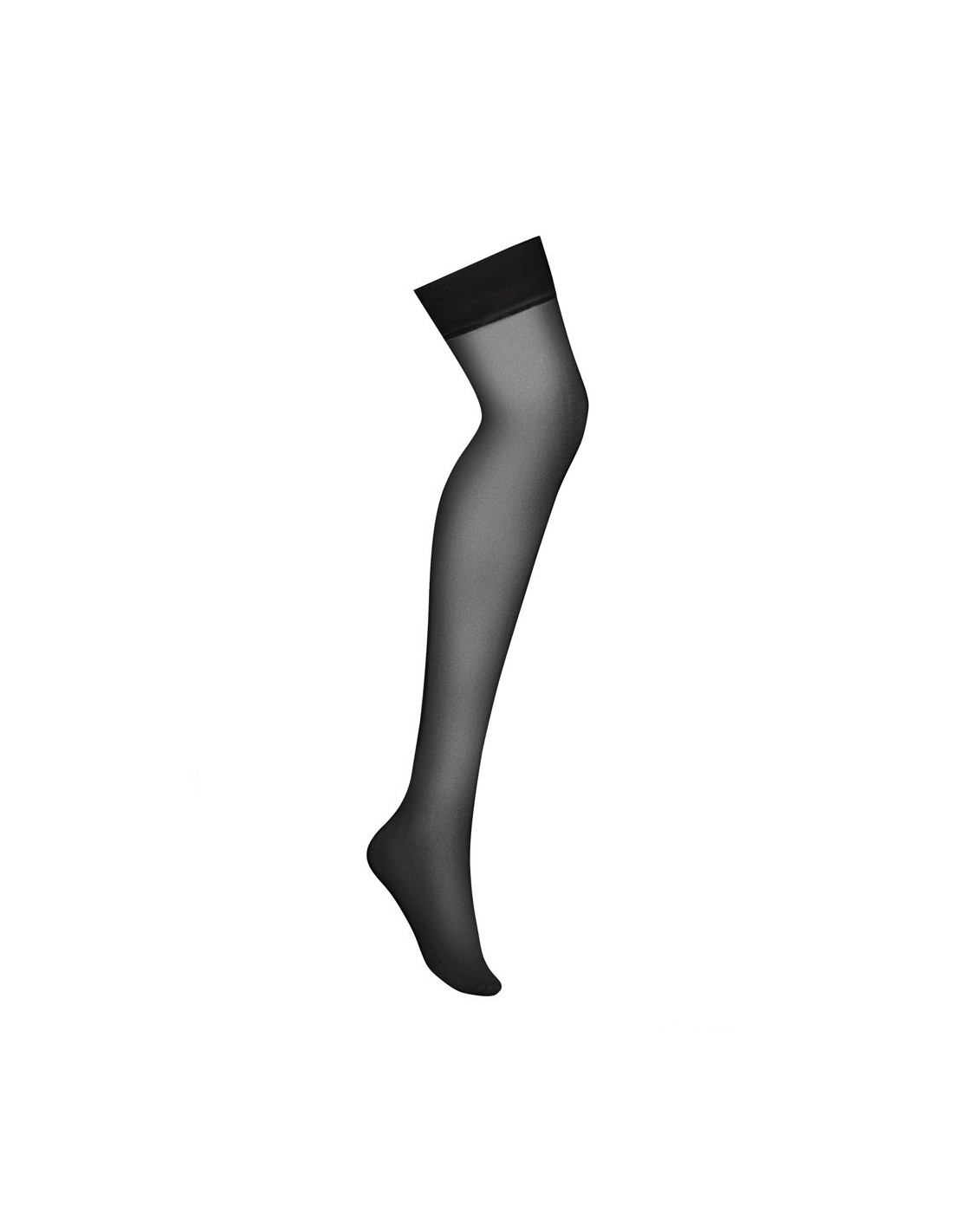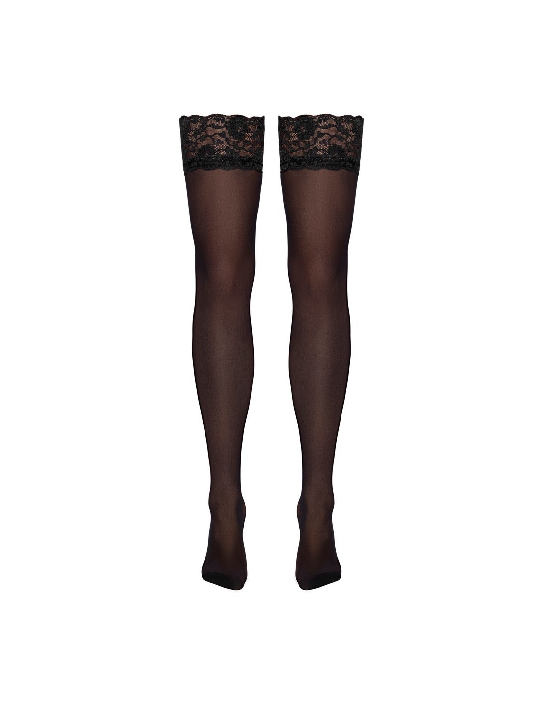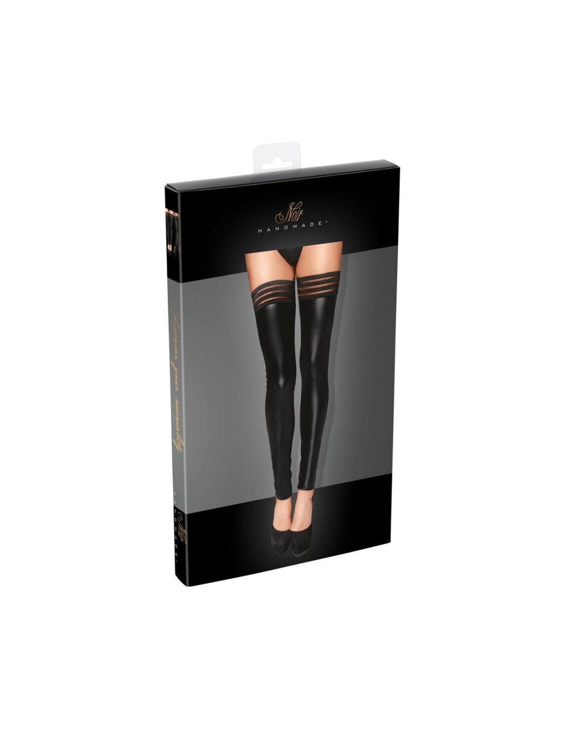 Calze a rete nere con parte superiore in pizzo di circa 12 cm di larghezza in nero/argento da agganciare a un reggicalze (non incluso). Sul retro con cucitura seducente.