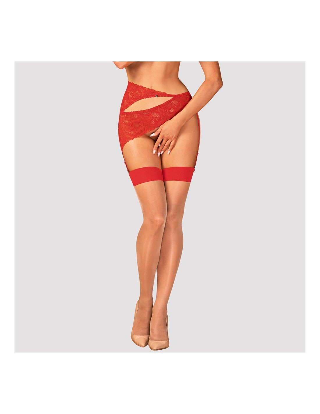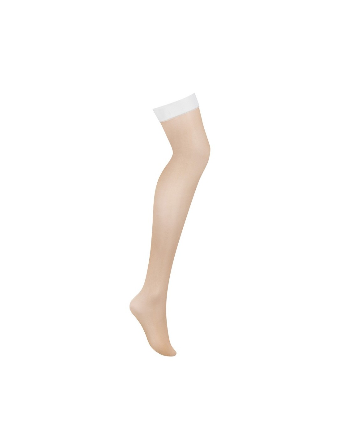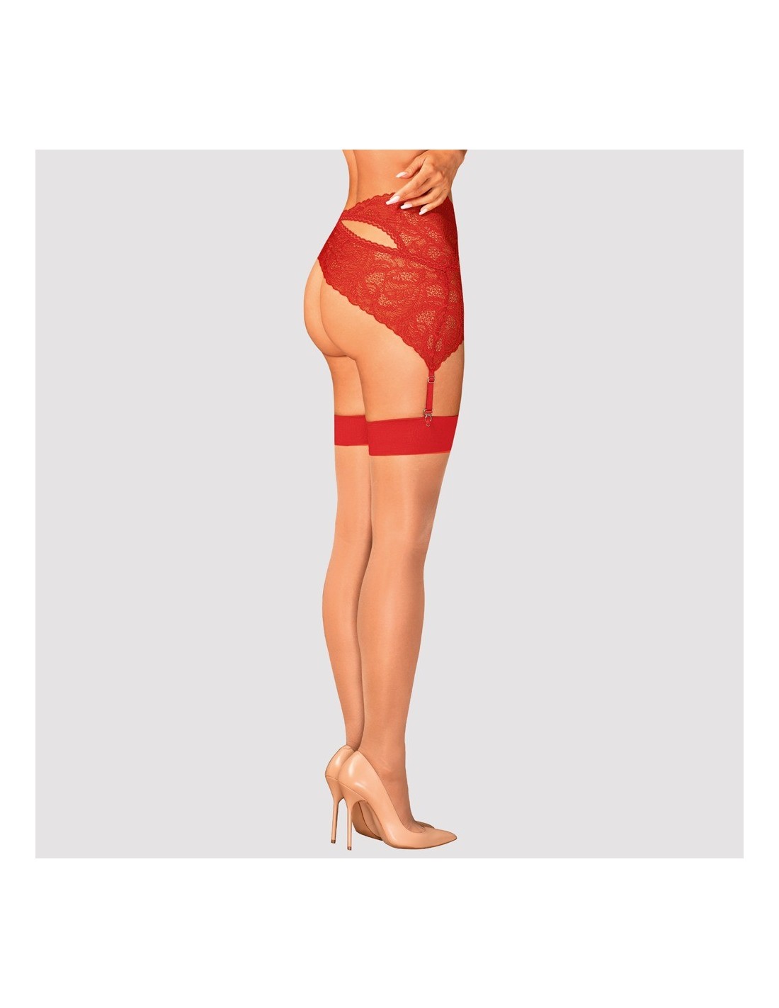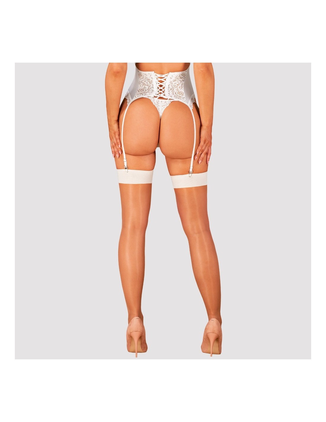 Calze a rete nere con parte superiore in pizzo di circa 12 cm di larghezza in nero/argento da agganciare a un reggicalze (non incluso). Sul retro con cucitura seducente.