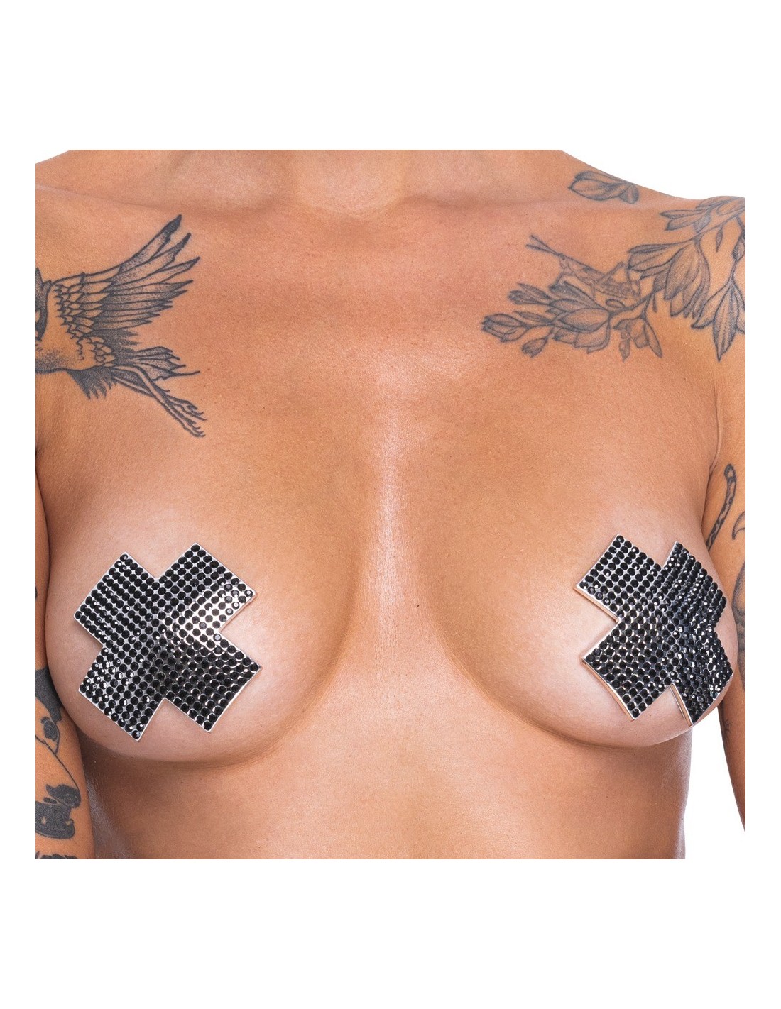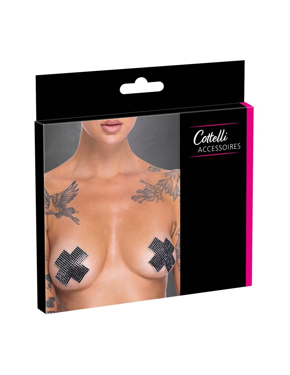 La croce adesiva per capezzoli di Cottelli ACCESSOIRES è una croce classica con pietre nere scintillanti. Da attaccare - può essere utilizzato più volte se la pellicola protettiva viene applicata nuovamente per la conservazione.