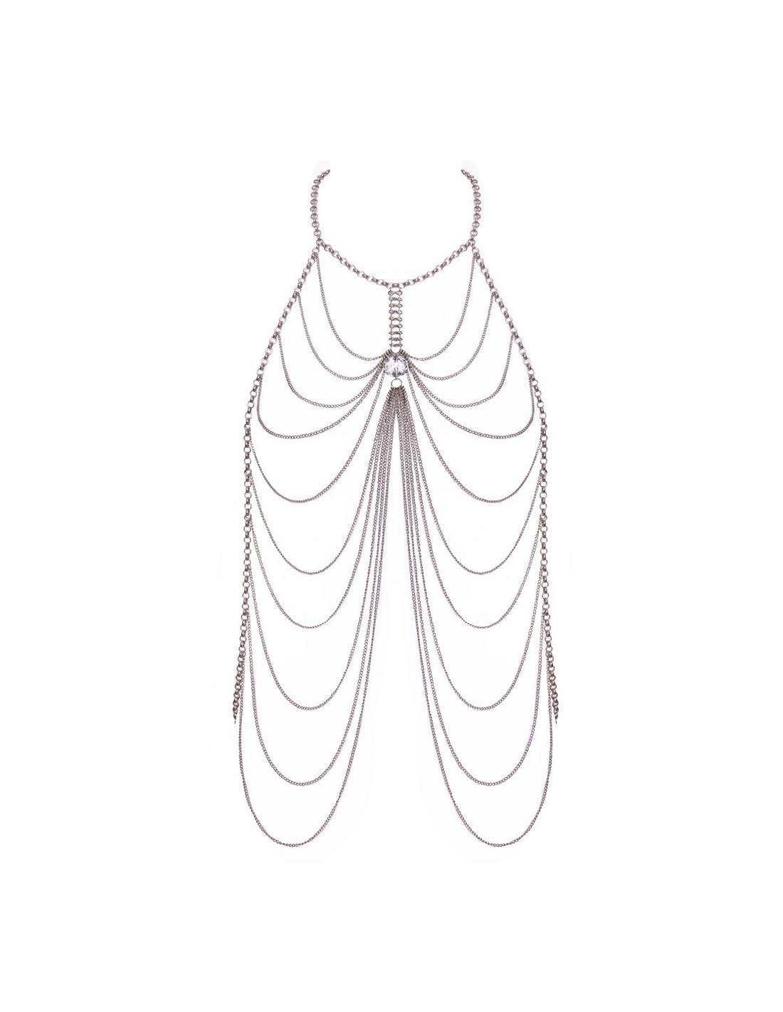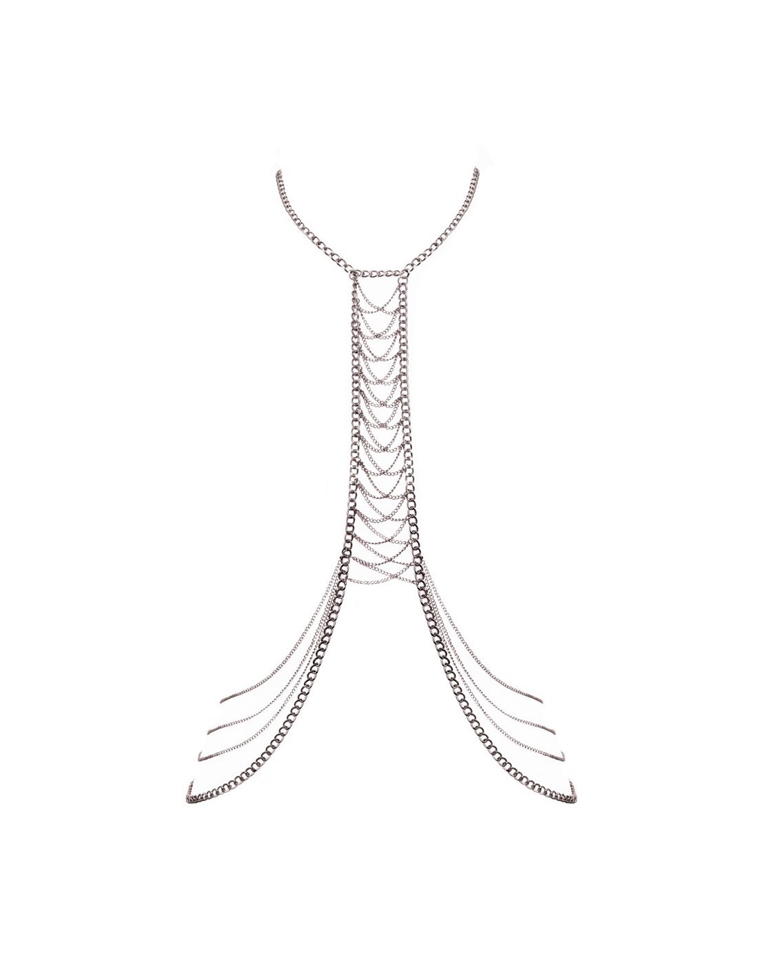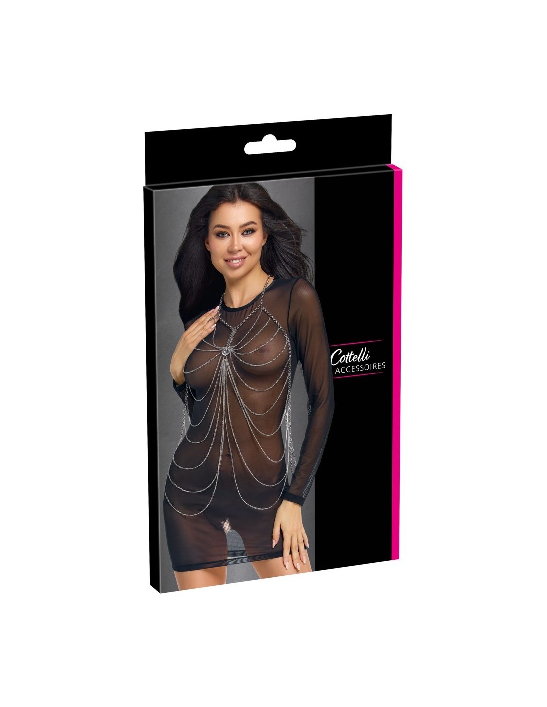 Catena per il corpo color argento di Cottelli ACCESSOIRES con sontuose finiture a catena sul davanti. Una grande gemma chiara tra i seni è un ulteriore richiamo per gli occhi. Portacollo con chiusura a moschettone. Indossati da soli come lingerie per un look erotico o abbinati con stile a costumi da bagno e abiti aderenti, questi gioielli per il corpo glamour attirano sempre l'attenzione!