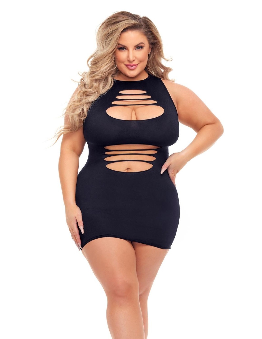 This slash and dash mini dress has all the slits where you need to bare. The sexy back design makes it irrestiably hot. The dress is talking as you are walking on the red carpet.