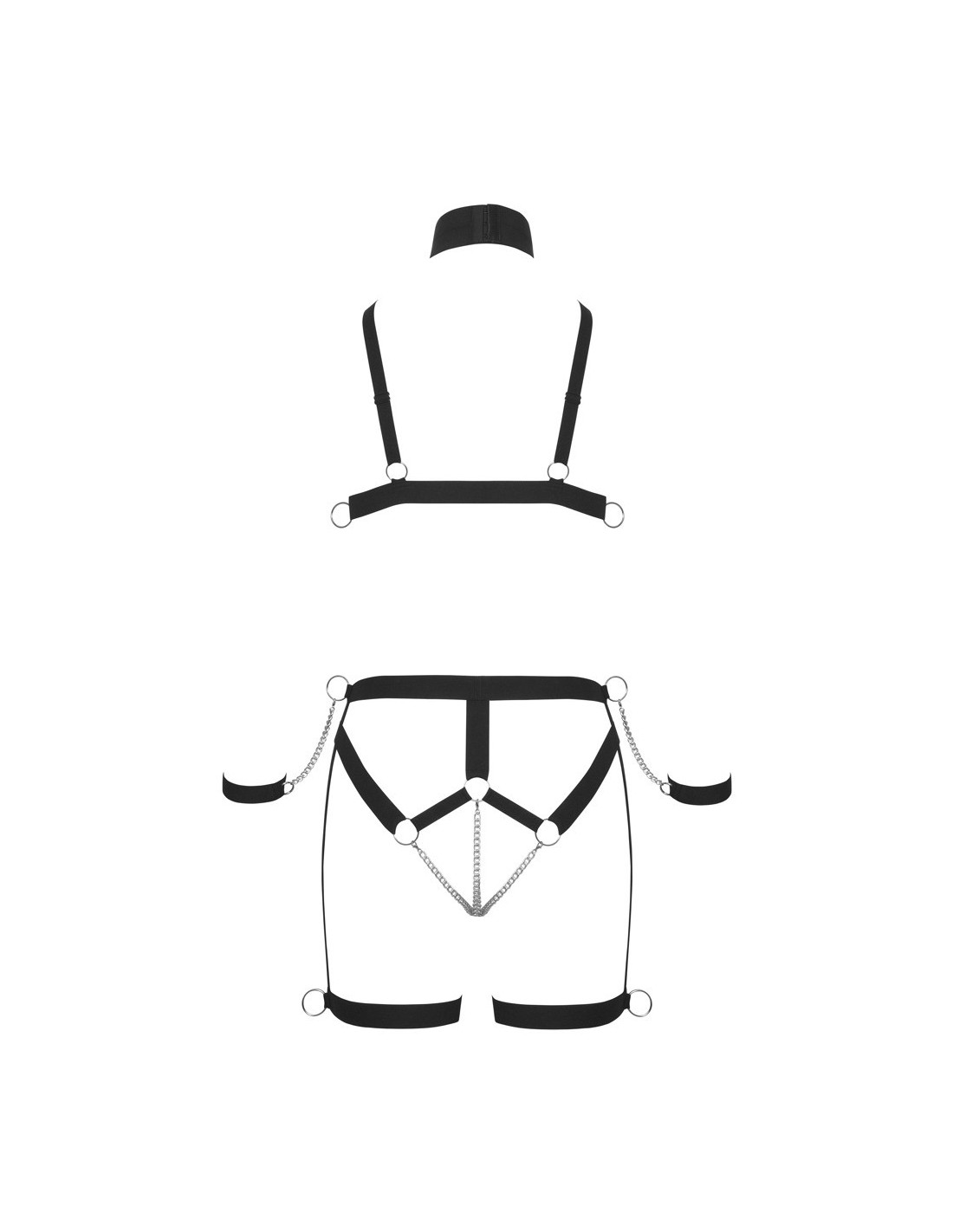 Questo set di imbracature ha un aspetto elegante e malvagio ed emana una calda vibrazione bondage. Il materiale è in spandex e ha fibbie multiple regolabili per il comfort ideale.