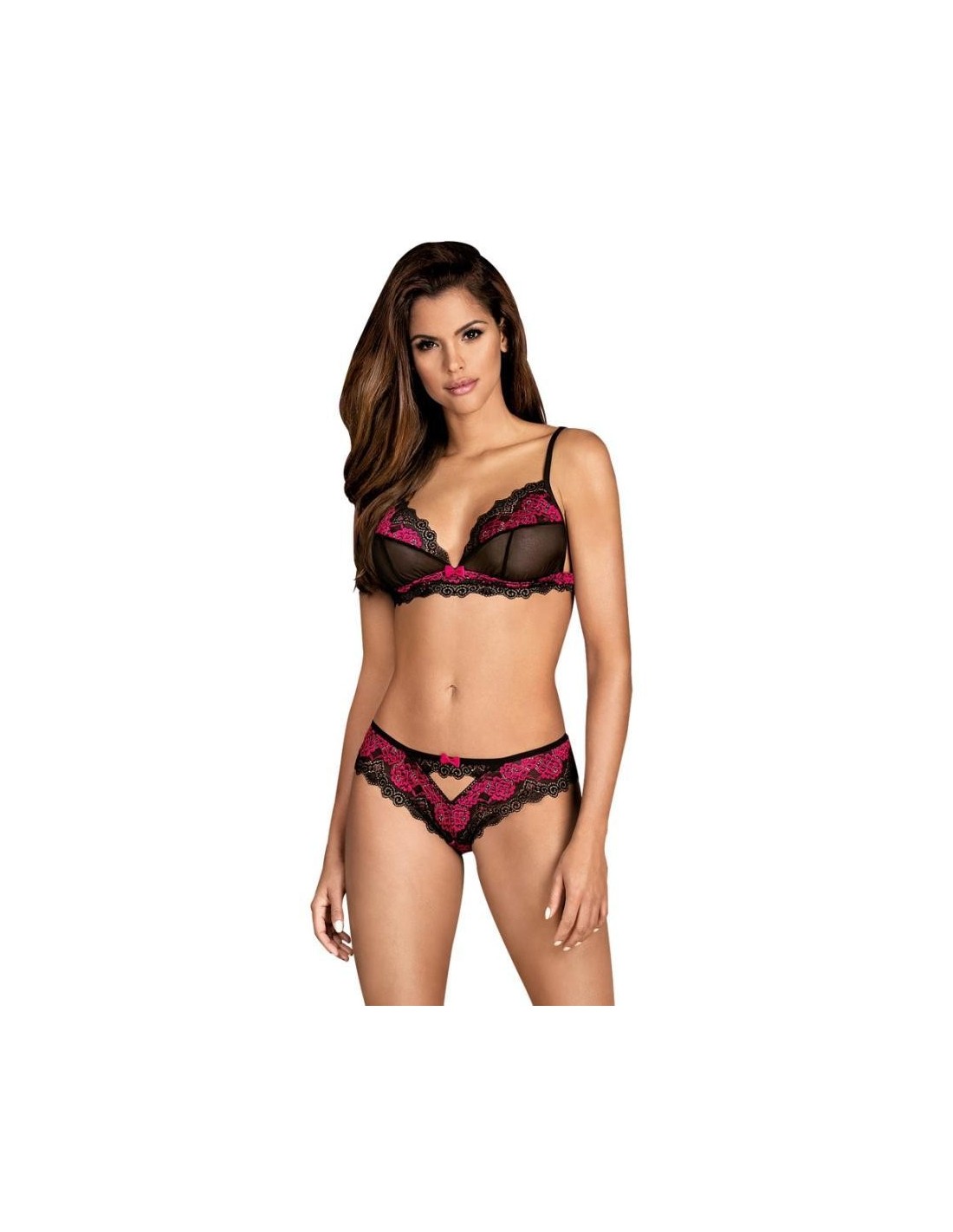 Questo set Tulia di Obsessive combina un pizzo romantico con un'estetica eccitante. Il reggiseno morbido e trasparente è abbinato a pizzo bicolore e offre spunti eccitanti. Gli slip sono realizzati interamente in pizzo e presentano un taglio decorativo sul davanti e sul retro. Questo set è particolarmente comodo da indossare e assolutamente adatto all'uso quotidiano.