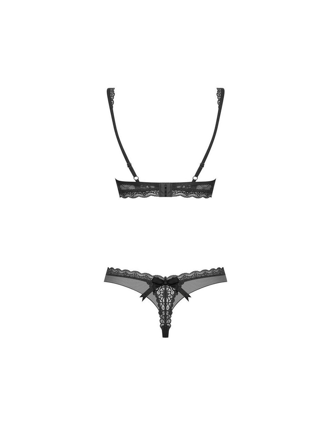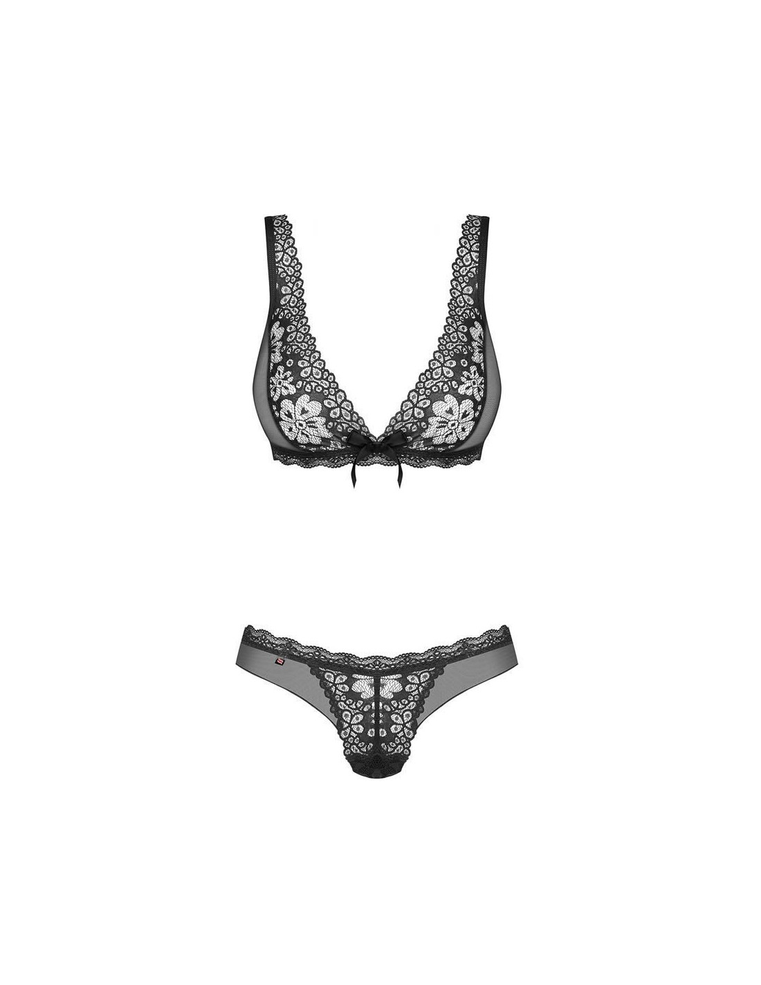 Make a naughty wish and… let it come true! How? Everything you need is right here – sexy, flowery lace and coquettish bows. Unforgettable evenings with your beloved man are coming. Use the piquant charm of this set and check what will happen then! Discover all hot details: - sexy, two-piece set with floral motif - bra with adjustable straps and multistage closure – perfect fitting - soft cups - lacy neckline – gorgeous look guaranteed - matching thong – sexy, exposed derriere - satin bow below the bust and above derriere - edges adorned with lace - set includes bra and thong - delicate, perfectly elastic fabric (90% polyamide, 10% elastane)