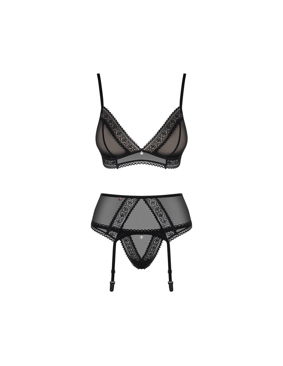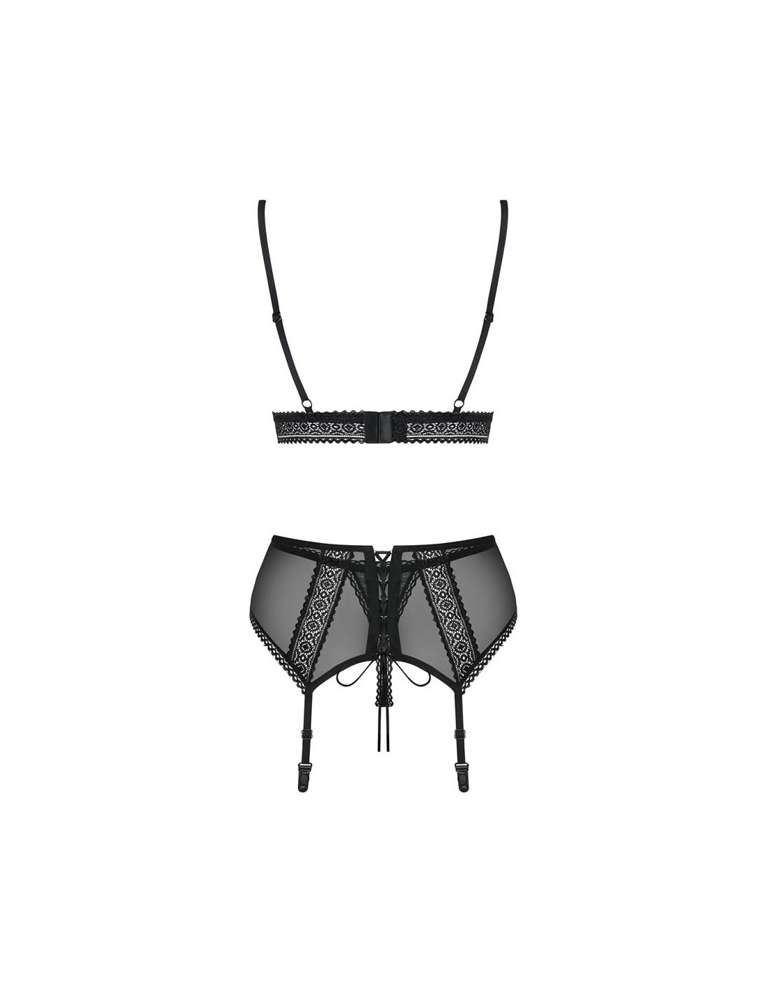 Cosa farai stasera? Set nero con bellissimi merletti e altri dettagli sexy! Come ti sentirai? Assolutamente fantastica! Sì, sarà una notte indimenticabile per te e il tuo amante. Preparati! Tutti i dettagli caldi: - set sensuale a tre pezzi con ornamenti di pizzo - reggiseno con chiusura multistadio e spalline regolabili - perfetta vestibilità - coppe imbottite con materiale beige - i seni sono enfatizzati - pizzi e cuciture speciali sulle coppe - il busto sembra fantastico! - reggicalze con allacciatura sexy su posteriore (Did2Fit) - reggicalze regolabili - due splendidi ciondoli - fiori con gioielli brillanti - questo set include: reggiseno, reggicalze e perizoma - calze non incluse - puoi acquistarle separatamente - i tessuti sono morbidi e perfettamente elastici (94% poliammide, 6% elastan)