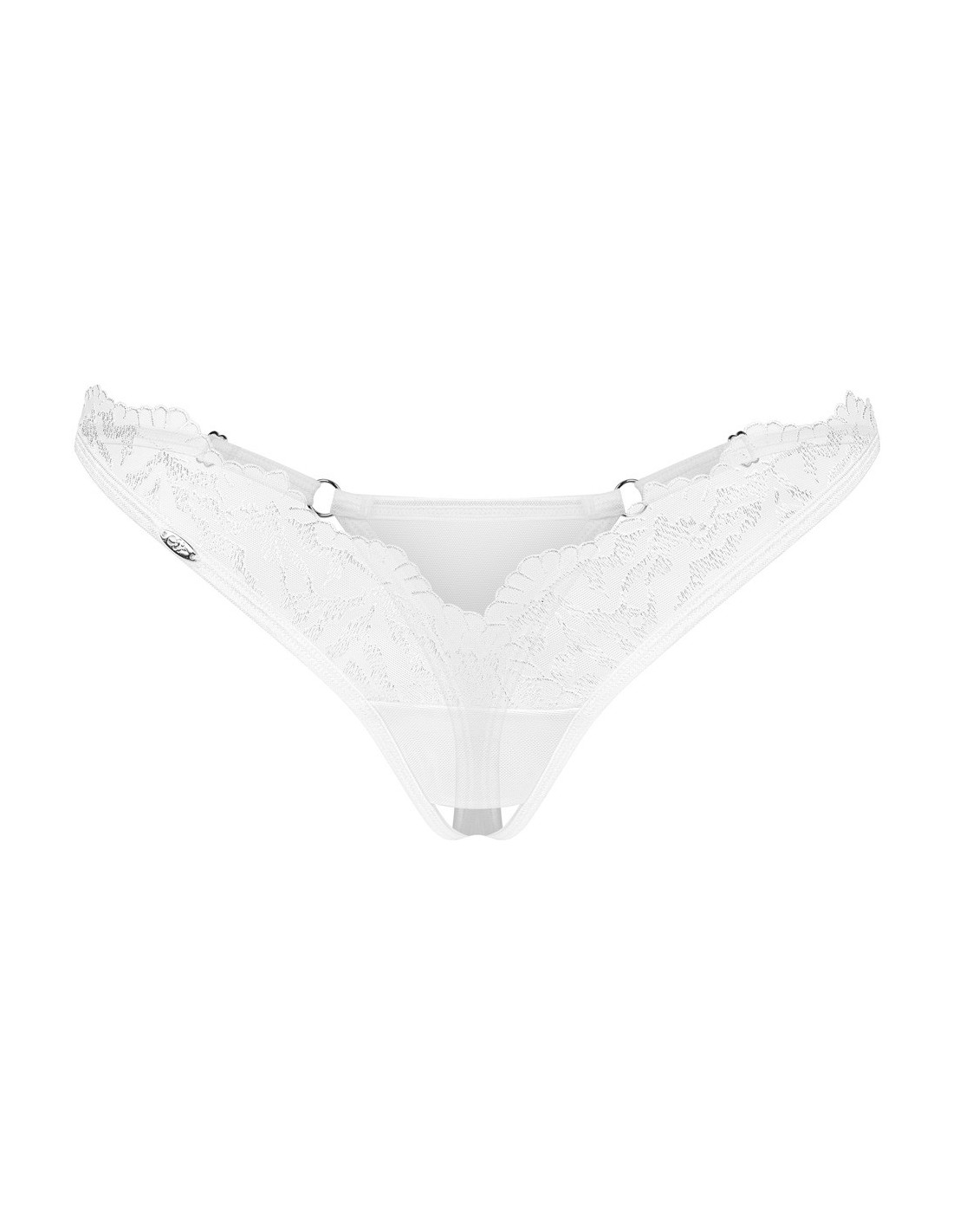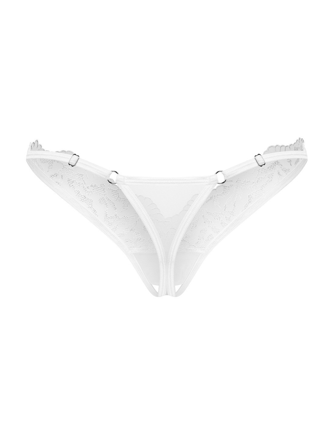Splendido perizoma crotchless Arrowel di Obsessive in tulle bianco trasparente con pizzo sottile sul davanti. Morbido ed elastico per un alto livello di comfort. Invitante apertura sul cavallo.